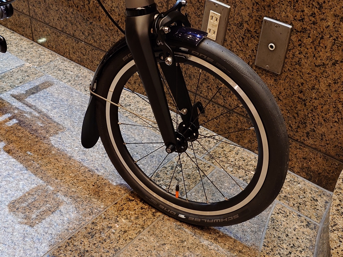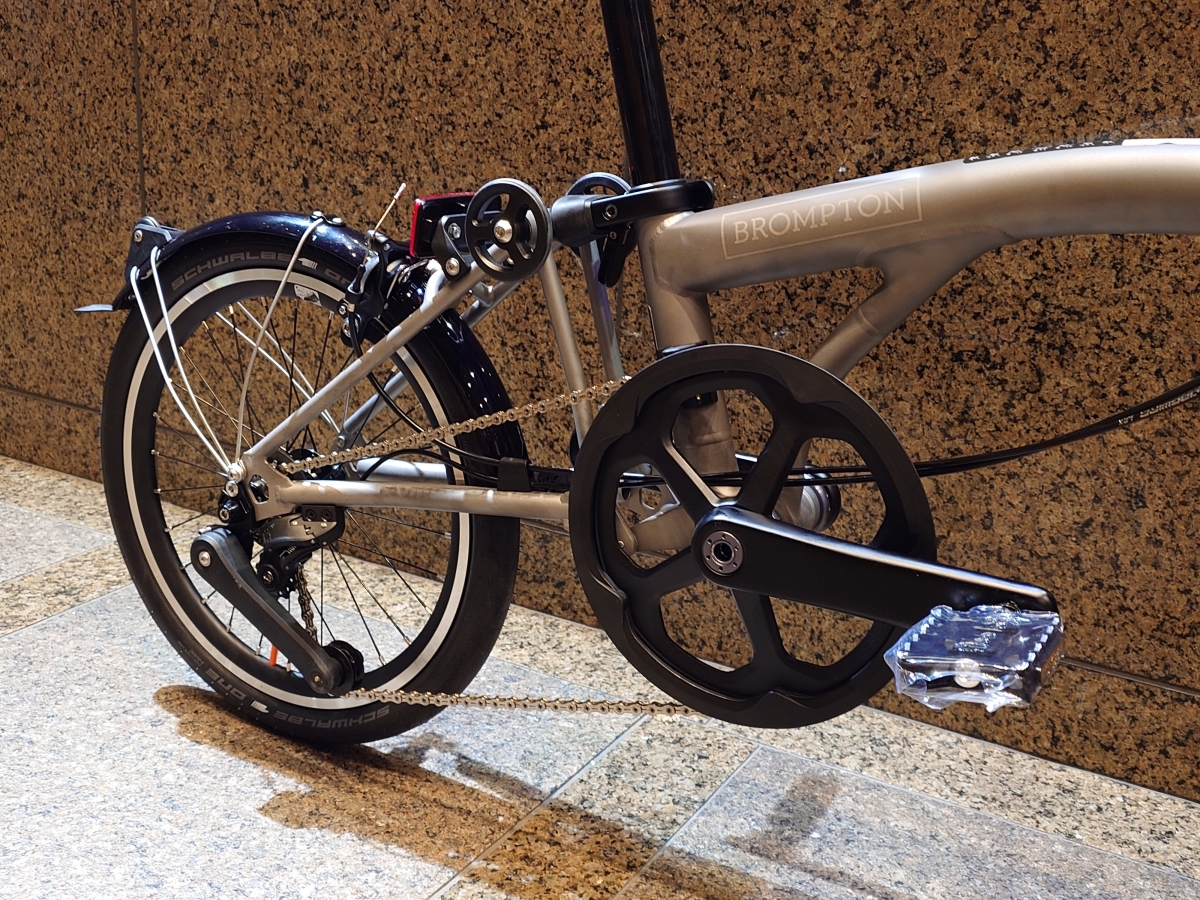 BROMPTON史上最軽量のモデルとなっており、メーカー公称値は7.95kgと非常に軽量。