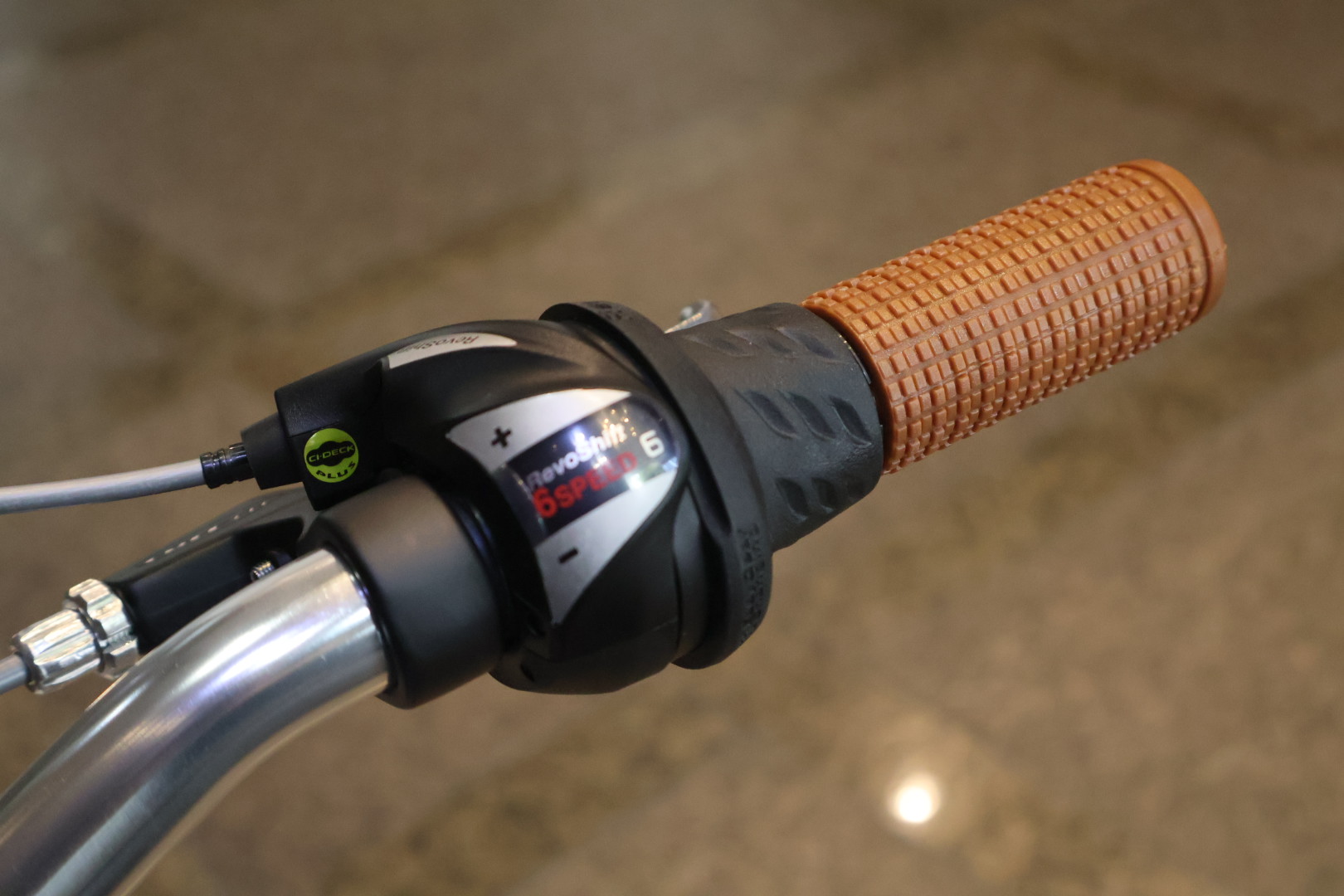 変速はグリップシフトの6段変速。手の小さいお子さんでも操作しやすくなっています。