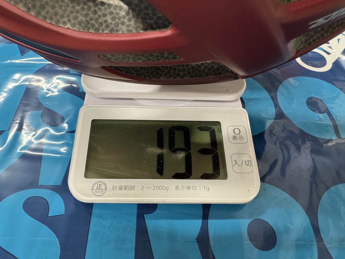 実測は193gでした。S/Mサイズのメーカー公表値で195gですのでほんの少しだけ軽かったので得した気分?