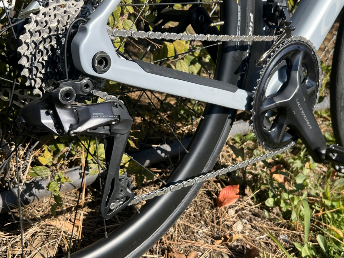 最強アシストはほんとにもうE-BIKEだなと感じるハイパワーぶり。優しく踏み込んでも後ろから押されるような強い力を感じます。コーナーリングからの立ち上がりのひと漕ぎめなどは特に顕著でした。逆に速度が上がるとアシストが効かなくなるのですが、その先からも十分に加速する力のあるフレームです。ロードバイクを長年楽しんできたライダーの方も納得のいくE-BIKEではないでしょうか。