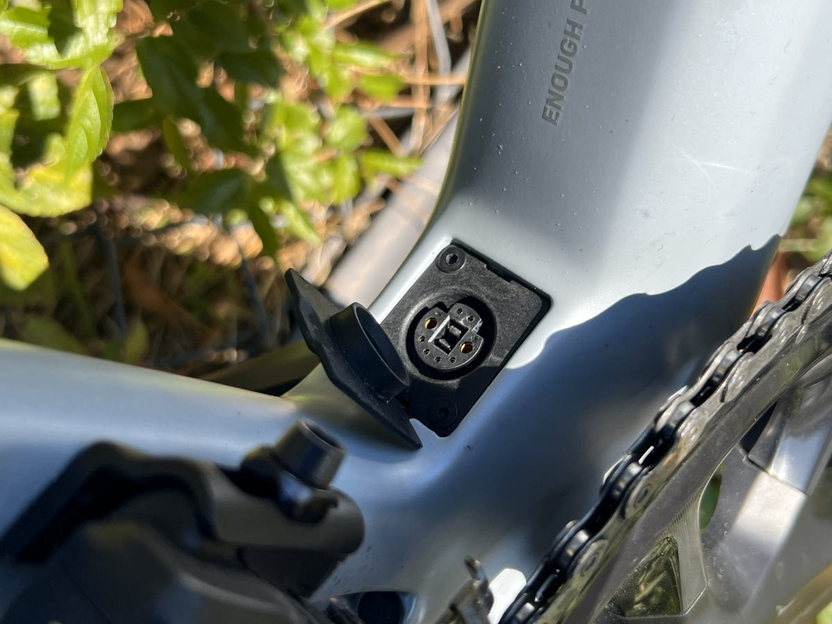 ダウンチューブ下部BB直上には充電ポート。