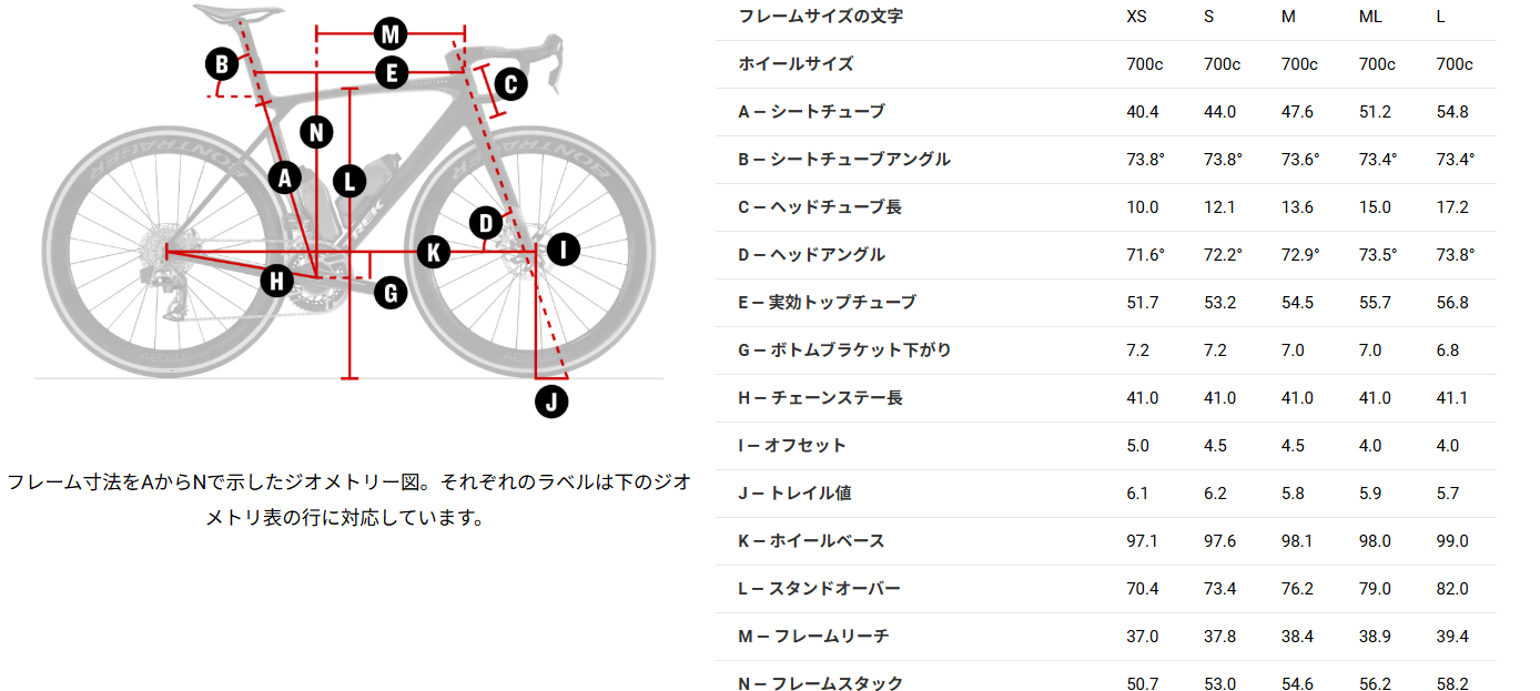 私はジオメトリー的にトップチューブ長が530mm~535mmくらいのサイズが合うのですが、NADONEのサイズ表とジオメトリー表を見ると