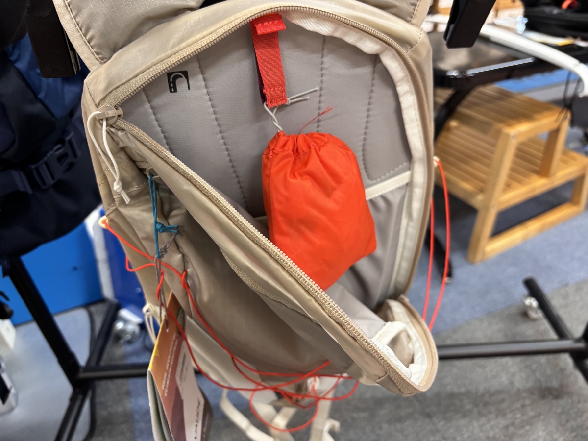メインコンパートにオレンジ色の小袋のレインカバーが初期装備されております。他にも反射材、ハイドレーションシステムポートなどあらゆるシーンで活躍するマルチタレントがあります。