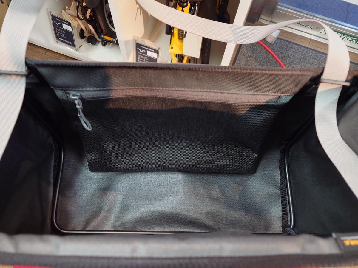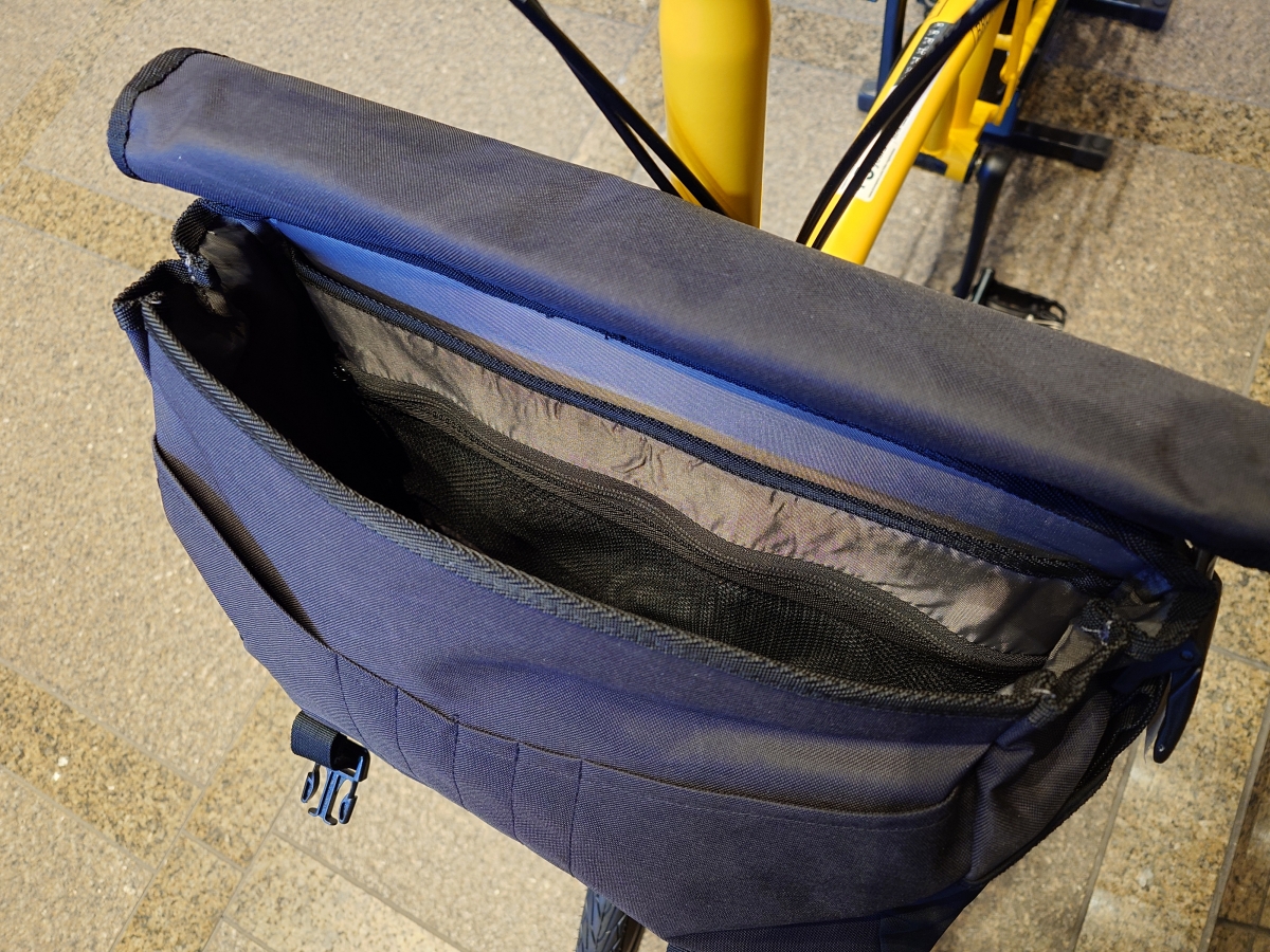 サイドのストラップで口が閉じれるので荷物が走行中に落下しないようにすることも出来ます。