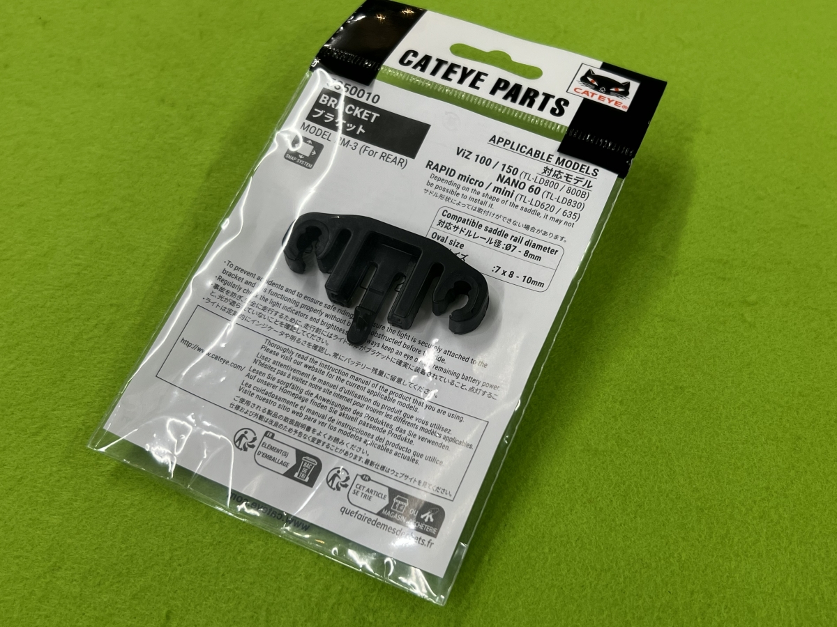 このブラケットはCATEYEより販売されているコンパクトテールランプに対応した、サドルレール取付用ライトブラケットです。対応ライトはサドル下に収まるコンパクトなもののみですが、よりシンプルにより軽量に仕上げたい方にとっては非常に魅力的な商品だと思います!サドル後端の形状やサドル前後位置など取り付け可不可はがありそうなので、ご自身のバイクをしっかりとご確認の上お求めください♪