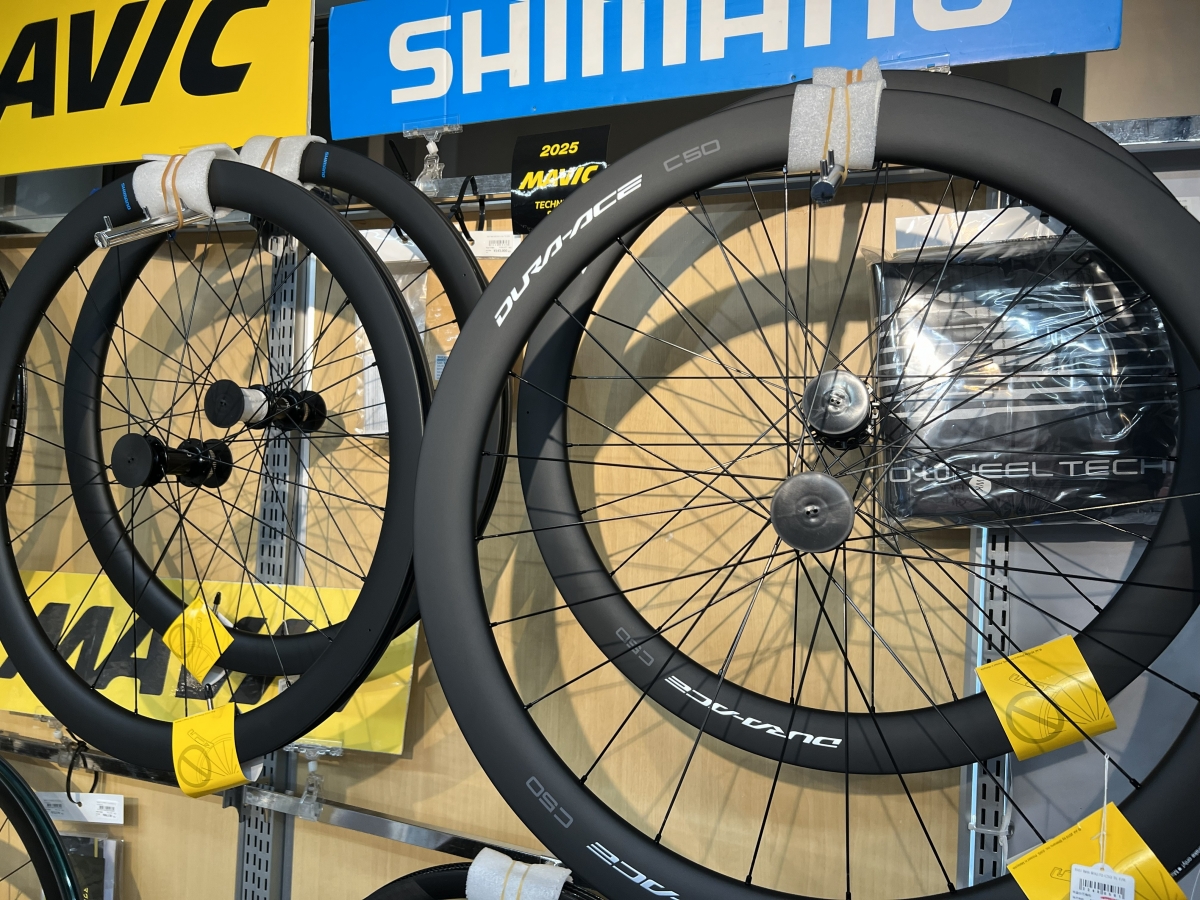 リムハイト50㎜のシマノホイールを特価でご用意しています!走行性能はもちろんルックスの変化も大きいリムハイトなので、見た目の変化も欲しいと考えている方はぜひご相談ください♪