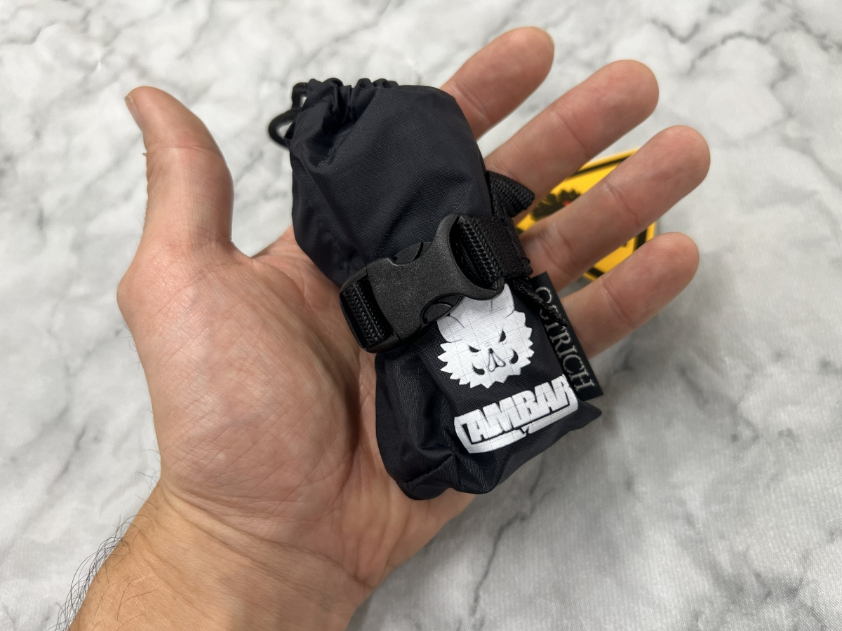 そして前述にもある通り非常にコンパクト!OSTRICH製携帯用ポシェットが付属しているのでこちらに収納して、サドル下に直に留めつけたりジャージポケット、バックパックのサイドポケット、サドルバッグなどに入れて持ち運べる便利な商品です。