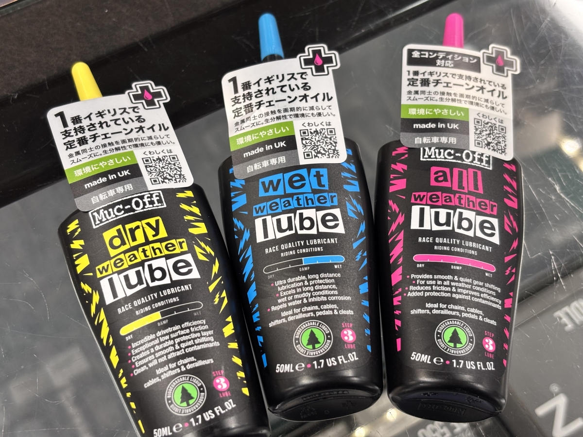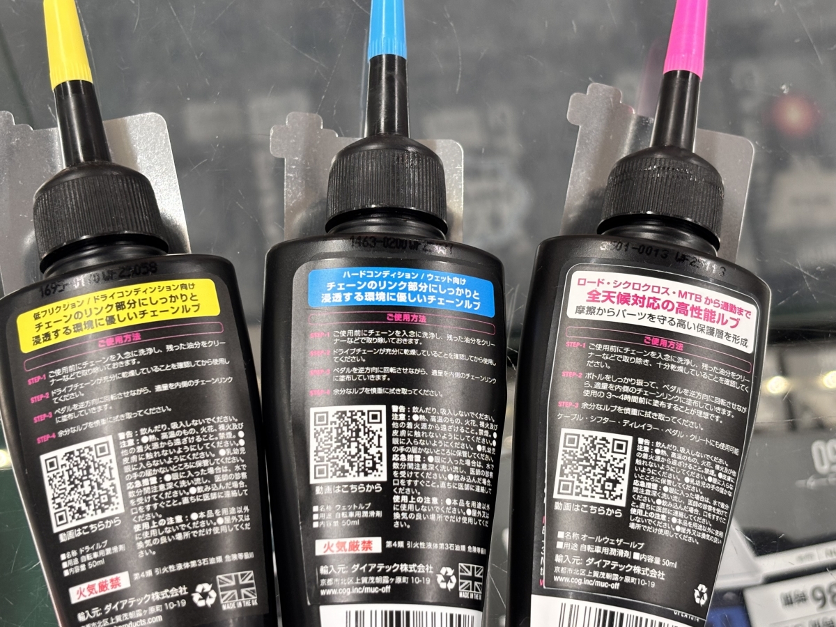 いかがでしたでしょうか、今回はMuc-offのチェーンルブを紹介しました。乗る人それぞれの好みがあると思うので自分の走る環境を考慮して購入を検討してみてください。今回紹介したのはすべて50mlですが店頭には120mlもありますので気になる方はぜひワイズロード池袋本館までお越しください!