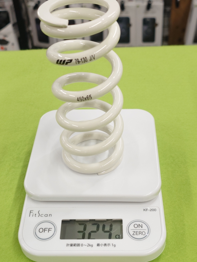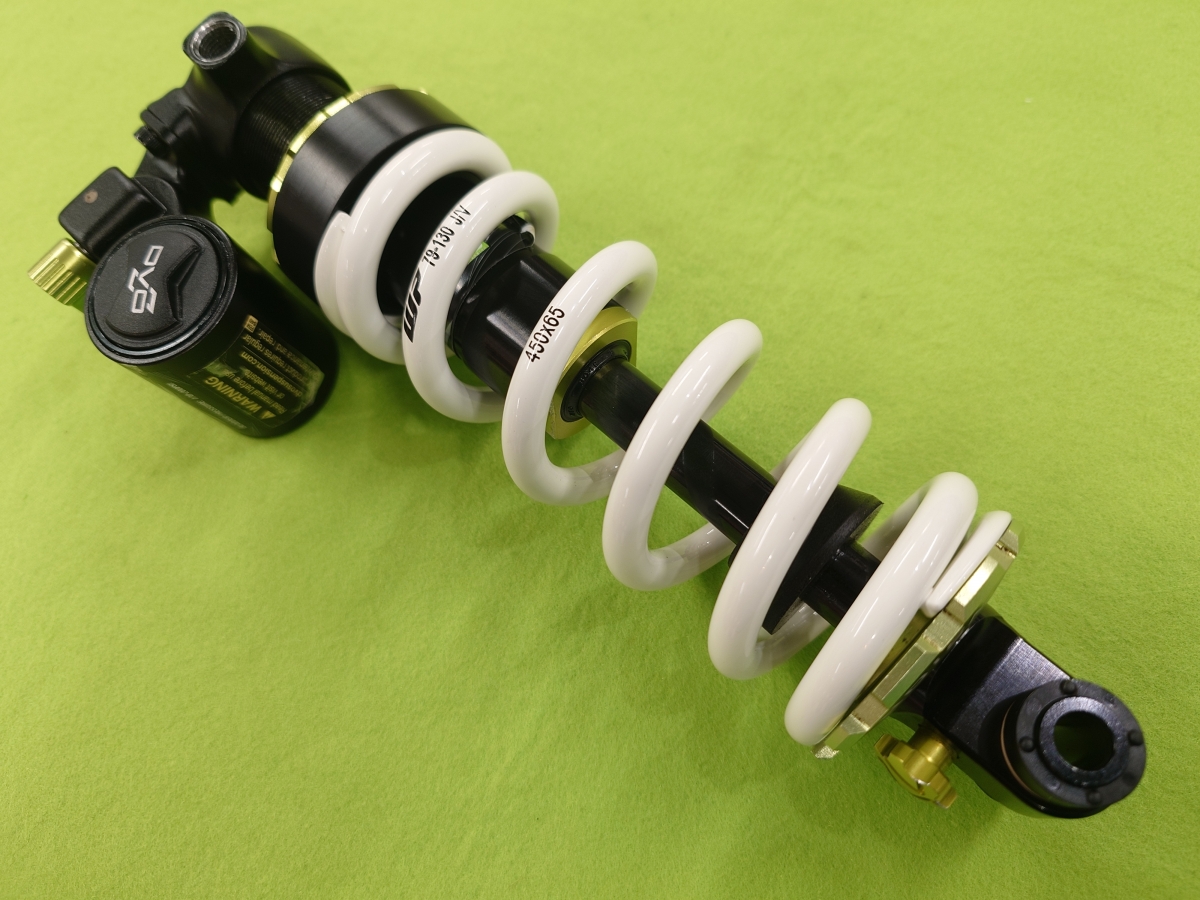 物欲は続くということですが(笑)手持ちの450スプリングはスチール製でかなり重かったため、軽いのが欲しいなぁと考えていたところ、DVOとWP(旧ホワイトパワーサスペンション、オフロードバイクのGASGASやKTMで有名)のコラボモデルが出たではないか!
