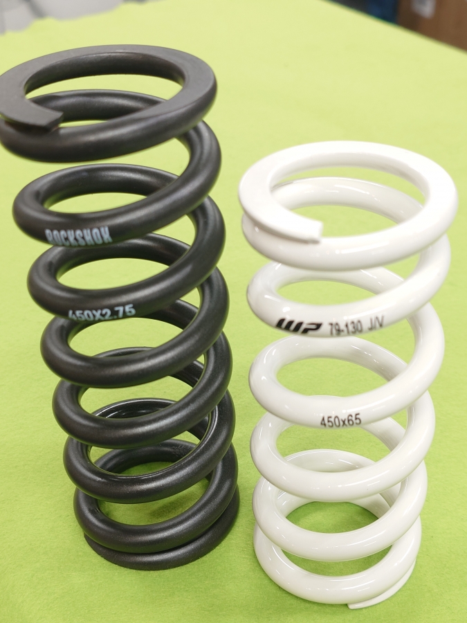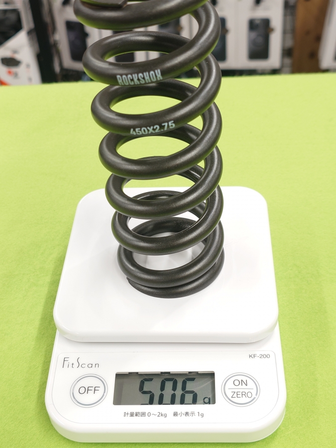 そこでブラダーへの加圧を高めにして若干コンプレッションが強くかかっているようなイメージで乗ってましたが、手持ちのジャンクパーツの中に450ポンドのスプリングを発見!(笑)