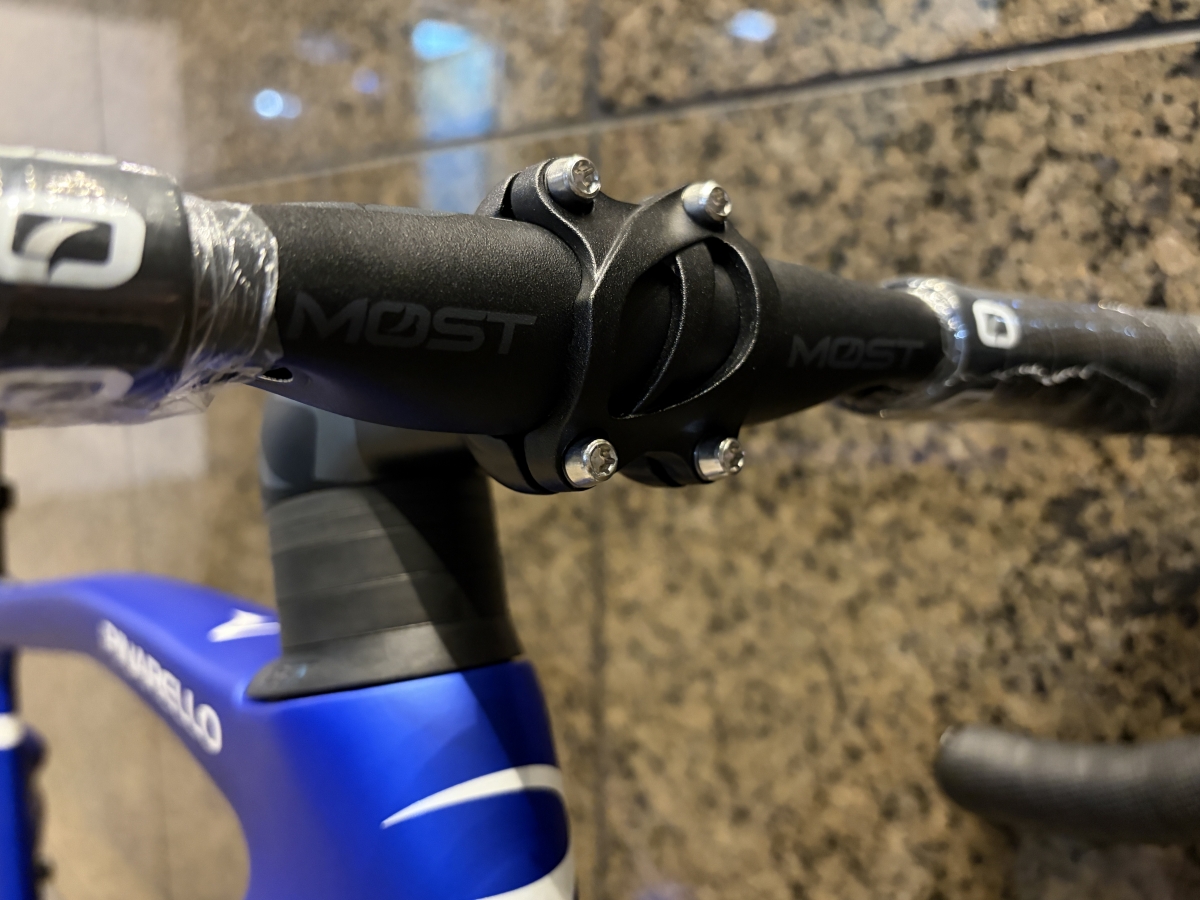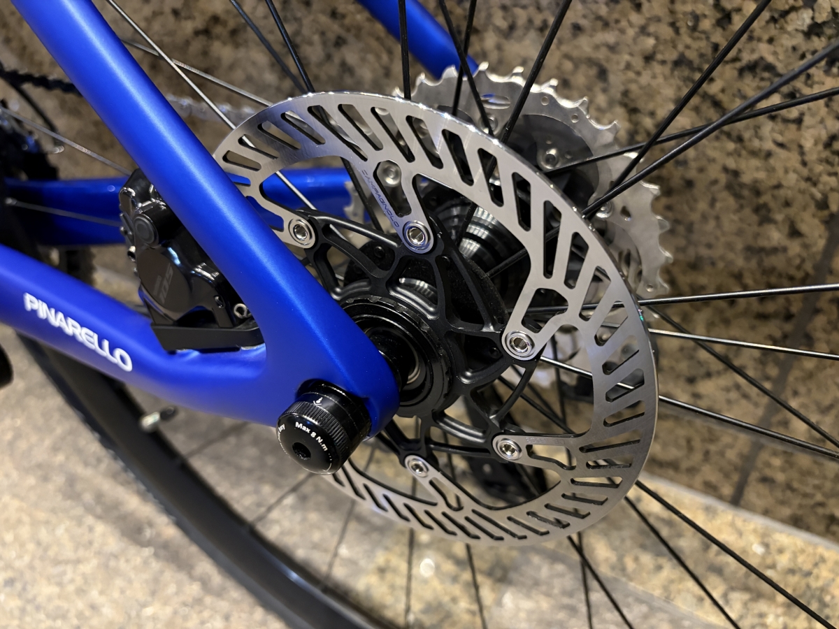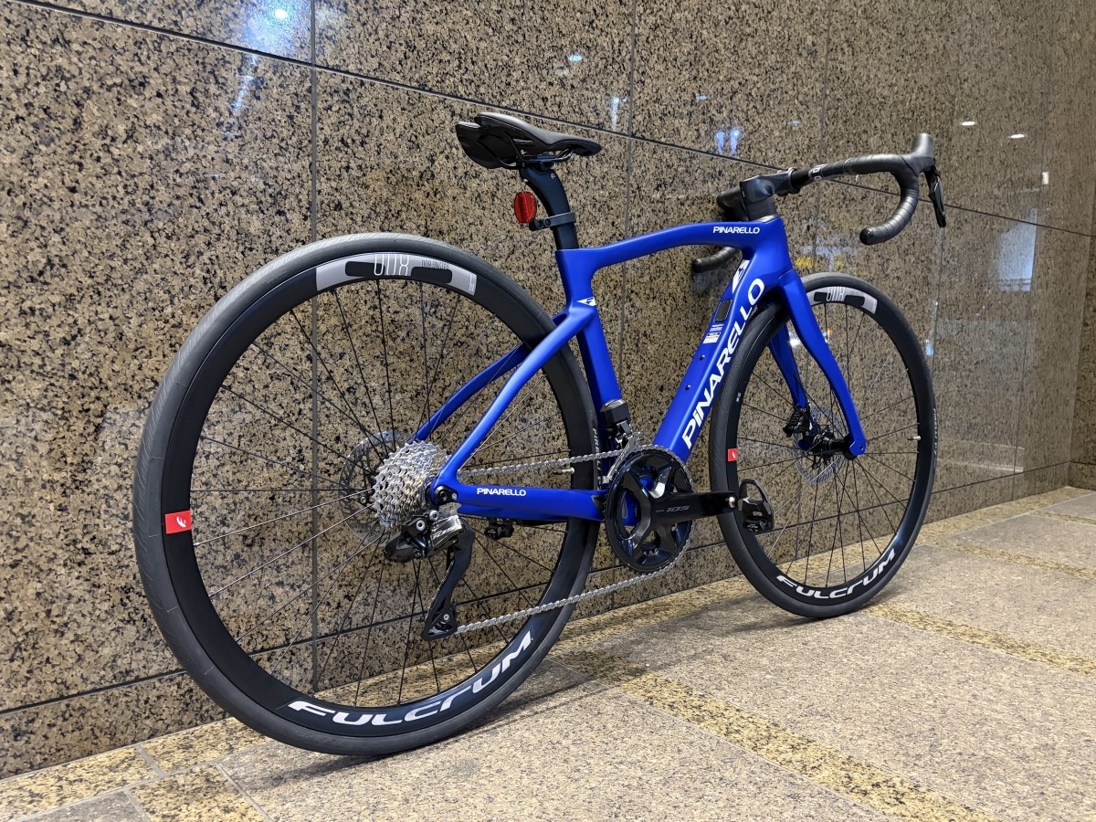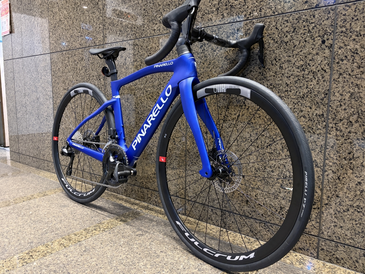 ピナレロに憧れがあったT様。他ブランドのロードバイクと悩みに悩まれピナレロF5 IMPULSE BLUEをチョイス。東レT700カーボンを使用したフレームは他Fシリーズ比較して柔らかめな剛性感の中に芯の部分にレーサーバイクらしさを感じるバイクです。