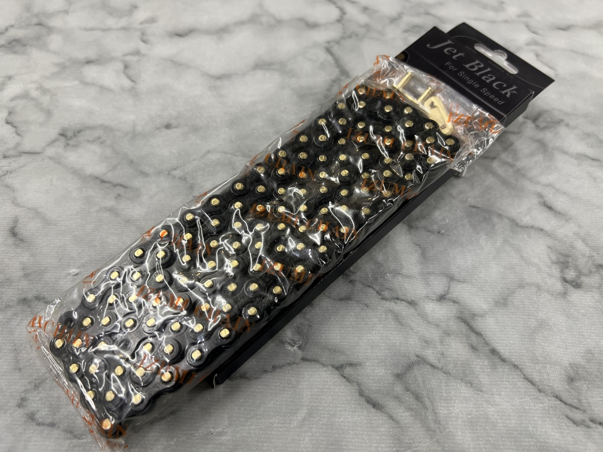 ブラックのバイクはもちろんホワイトやカラフルなバイクのアクセントにもオススメの商品です。シングルバイク・ピストバイクもチェーンは消耗品です。カスタムを含めてぜひ交換をご検討下さい♪