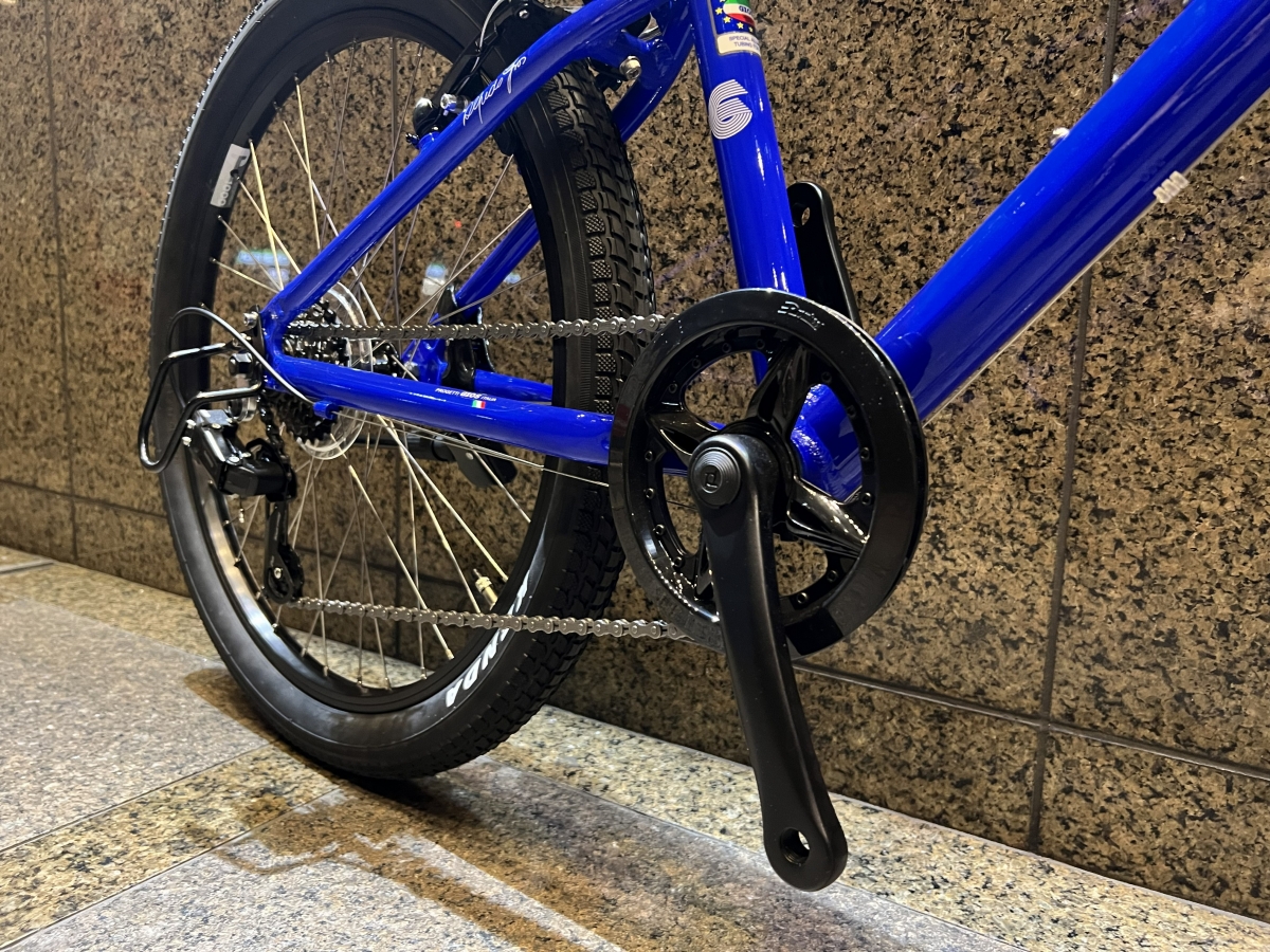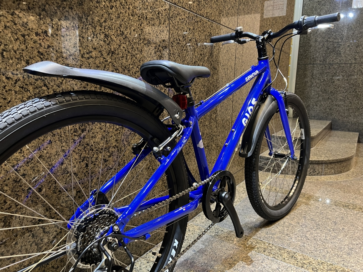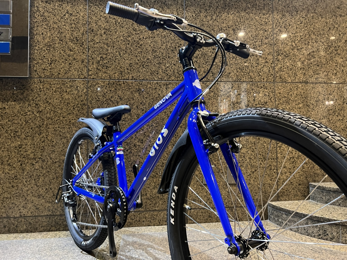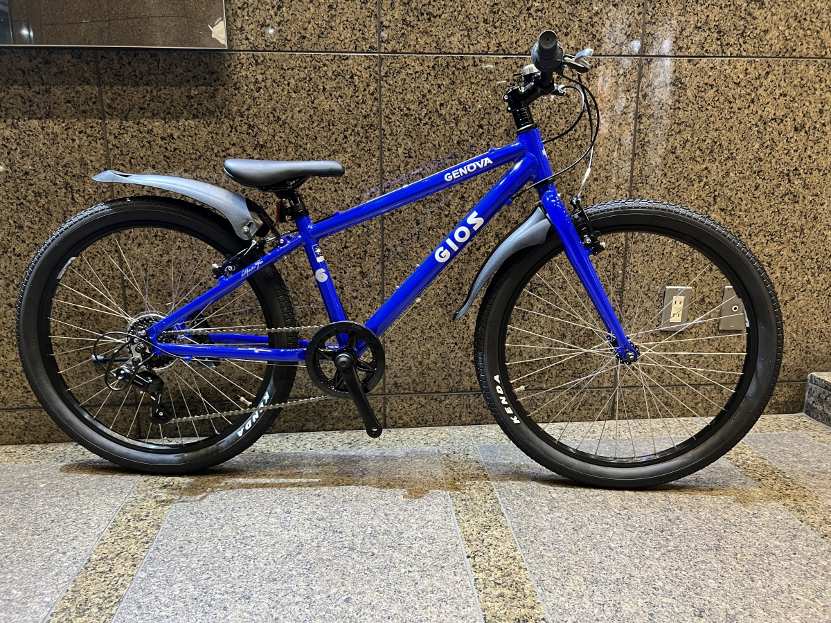 今回カスタムしたバイクはモデルチェンジして人気再燃中の“GENOVAシリーズ”最大サイズの24インチ。適正身長125-145㎝程度のサイズ感です。前モデルと比較すると、全体的にスッキリとしたフレームとフロントシングル×6段スピードを搭載した使い勝手のいいキッズバイクです。