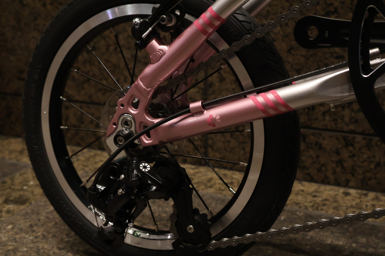 フレームのベースカラーにシルバーを採用しフレームの各所に桜の花びらがちりばめてあり、車体前方と後方のカラーも桜をイメージするような配色がされていて日本の春を象徴する可愛いカラーリングになってます!
