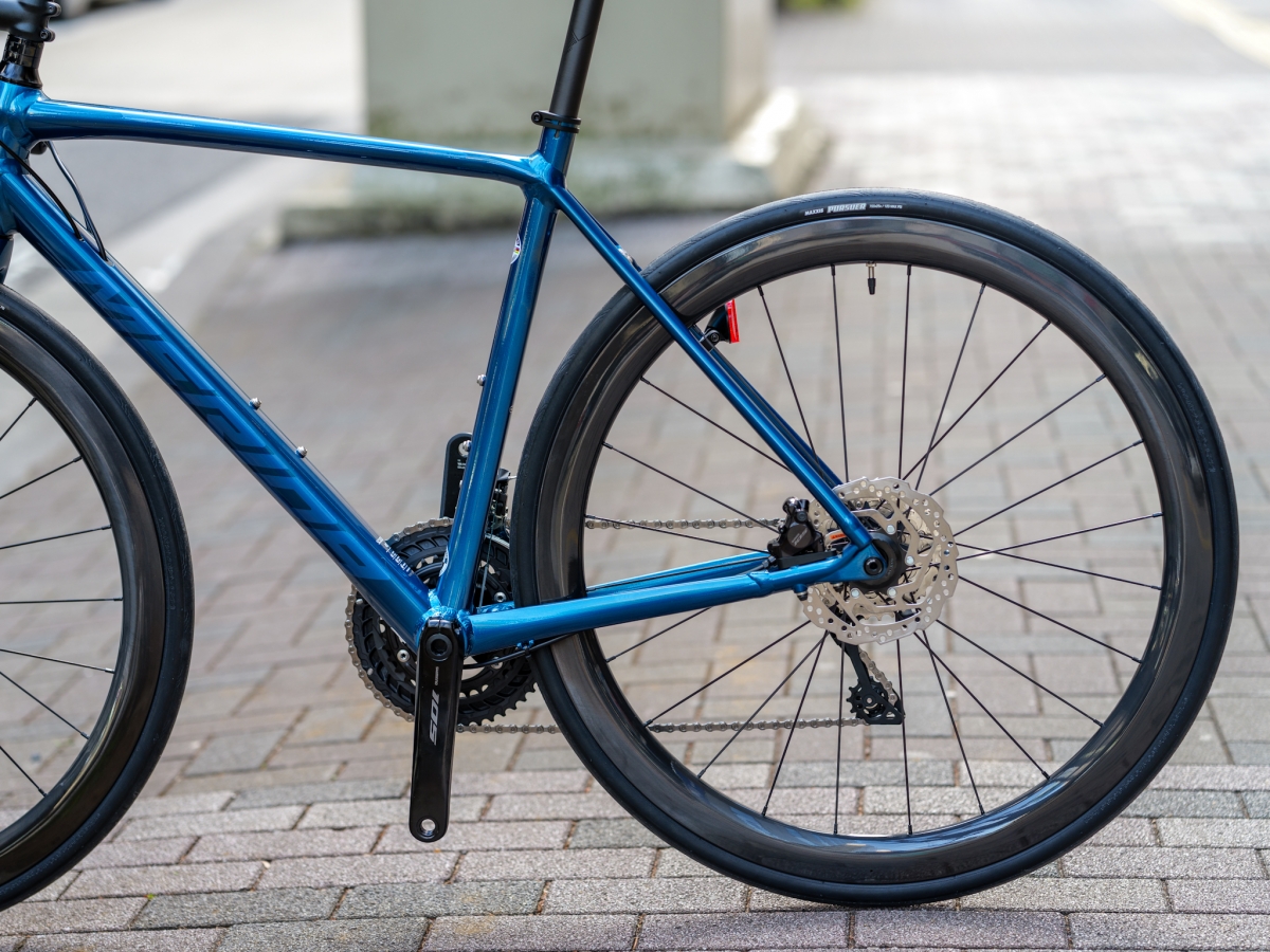 チェーンやブレーキローターもシマノ製品かつタイヤもケブラービード仕様となり、コストダウンがされがちな箇所でも“良い物”を使うという姿勢が感じられます。