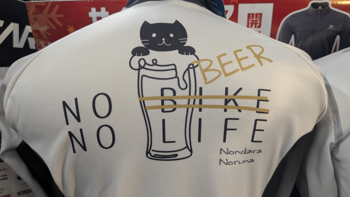 NO BIKE NO LIFE(自転車なくして人生なし)ではなくNO BEER NO LIFE(ビールなくして人生なし)。