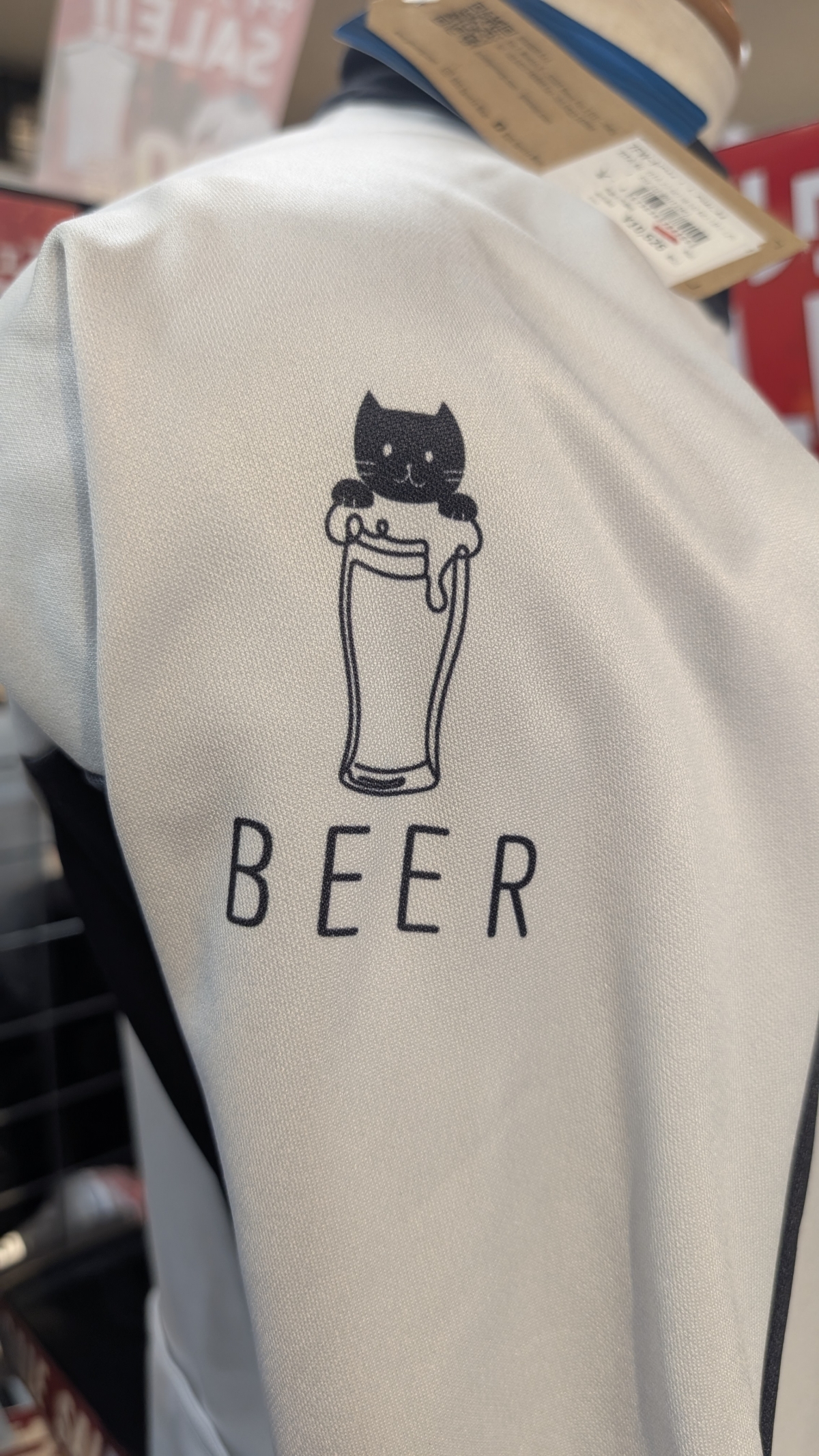 可愛い猫とビールが描かれているこちらのウェア!