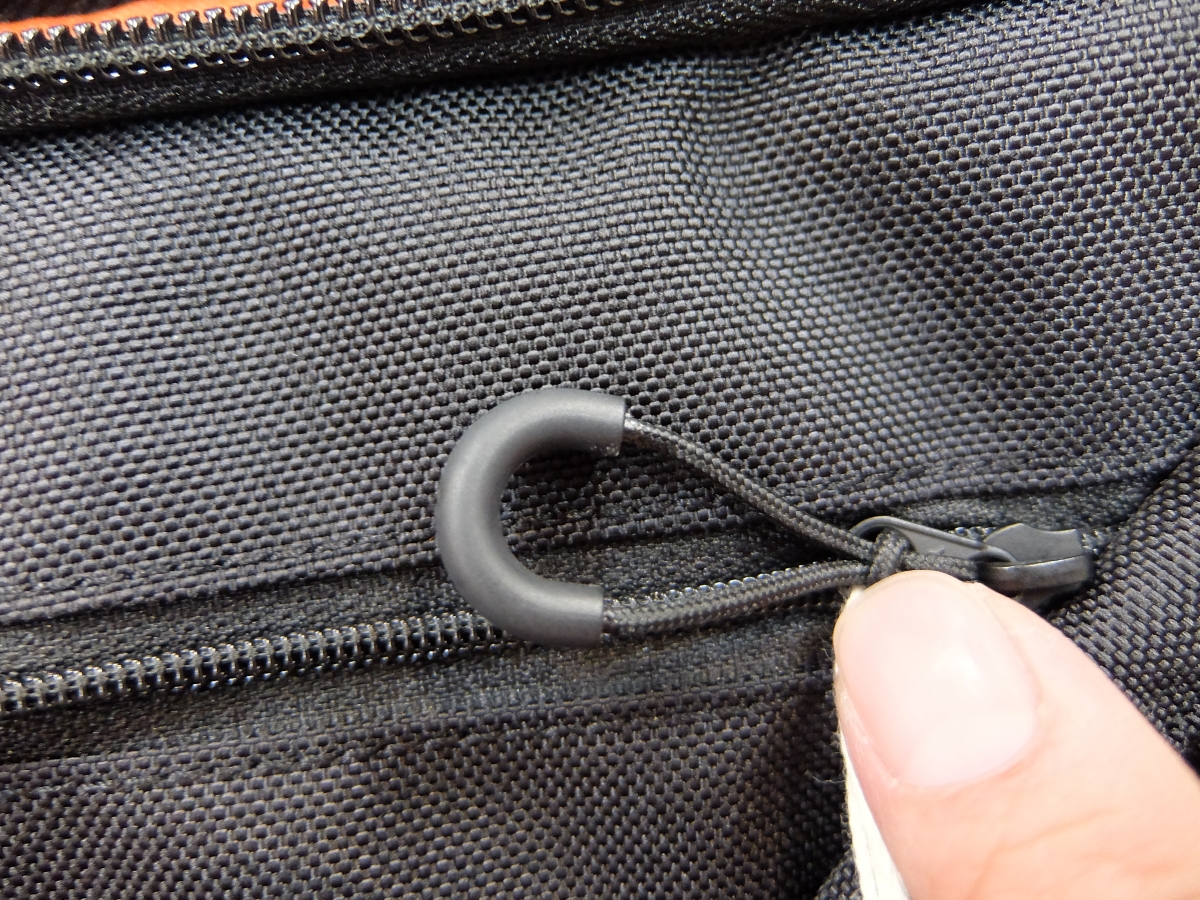 二つあるファスナーの先端にはそれぞれ指を掛けやすいファスナープルが付いているので、グローブを着用したままの手でも開閉しやすくなっています。