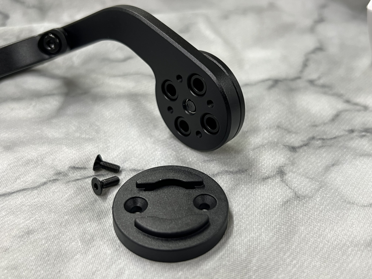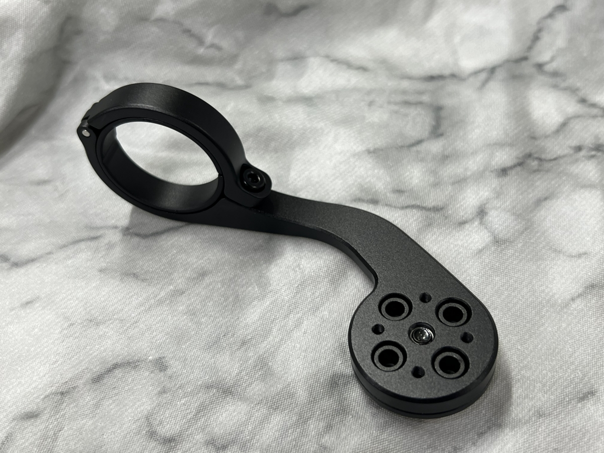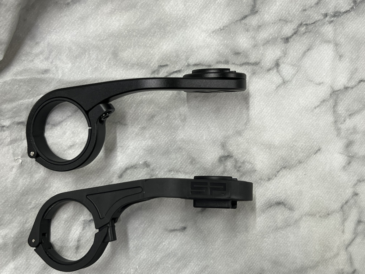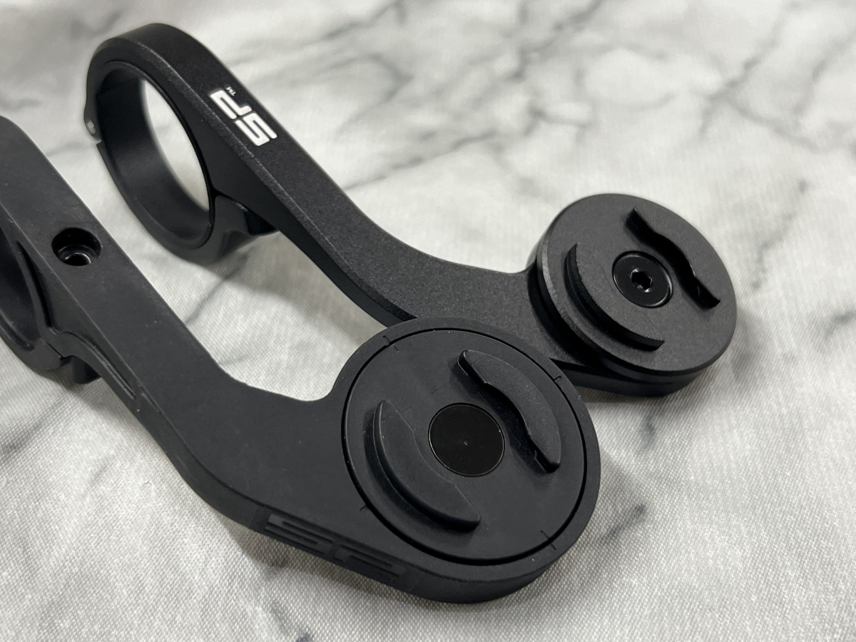 HANDLEBAR MOUNT(左)は樹脂製のマウントです。スマホやライトなどに負けない強度を持ち合わせていますが、材質上少し厚みがありぼてっとした印象だと感じる方もいるようです。