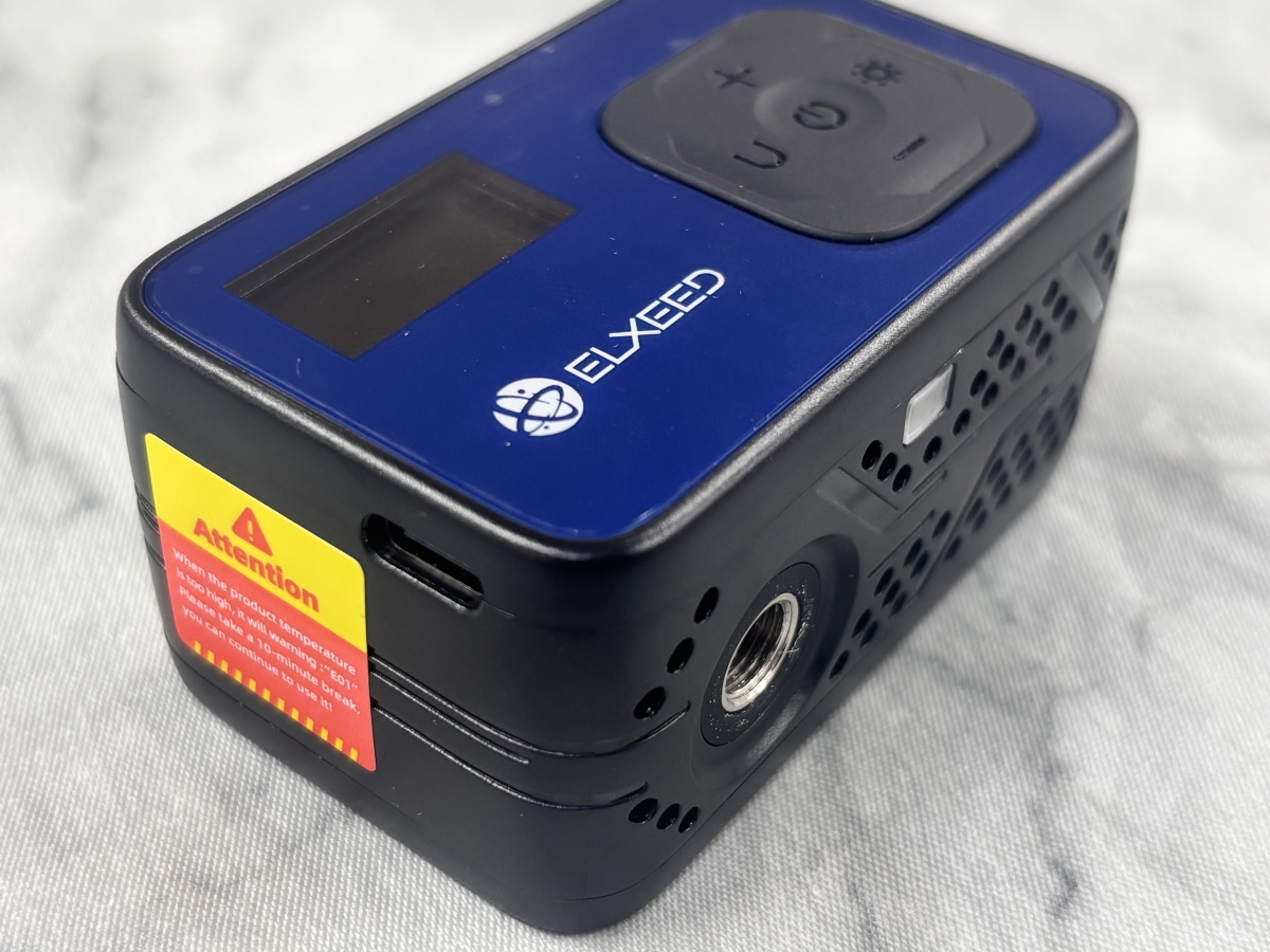 最大連続使用時間は10分で本体充電時間は0スタートから1時間ほどで満充電になります。充電ポートは本体側面からType-Cケーブルでの充電が可能。一般的な充電ケーブルなので旅先なんかでも簡単に充電することが出来ますね。
