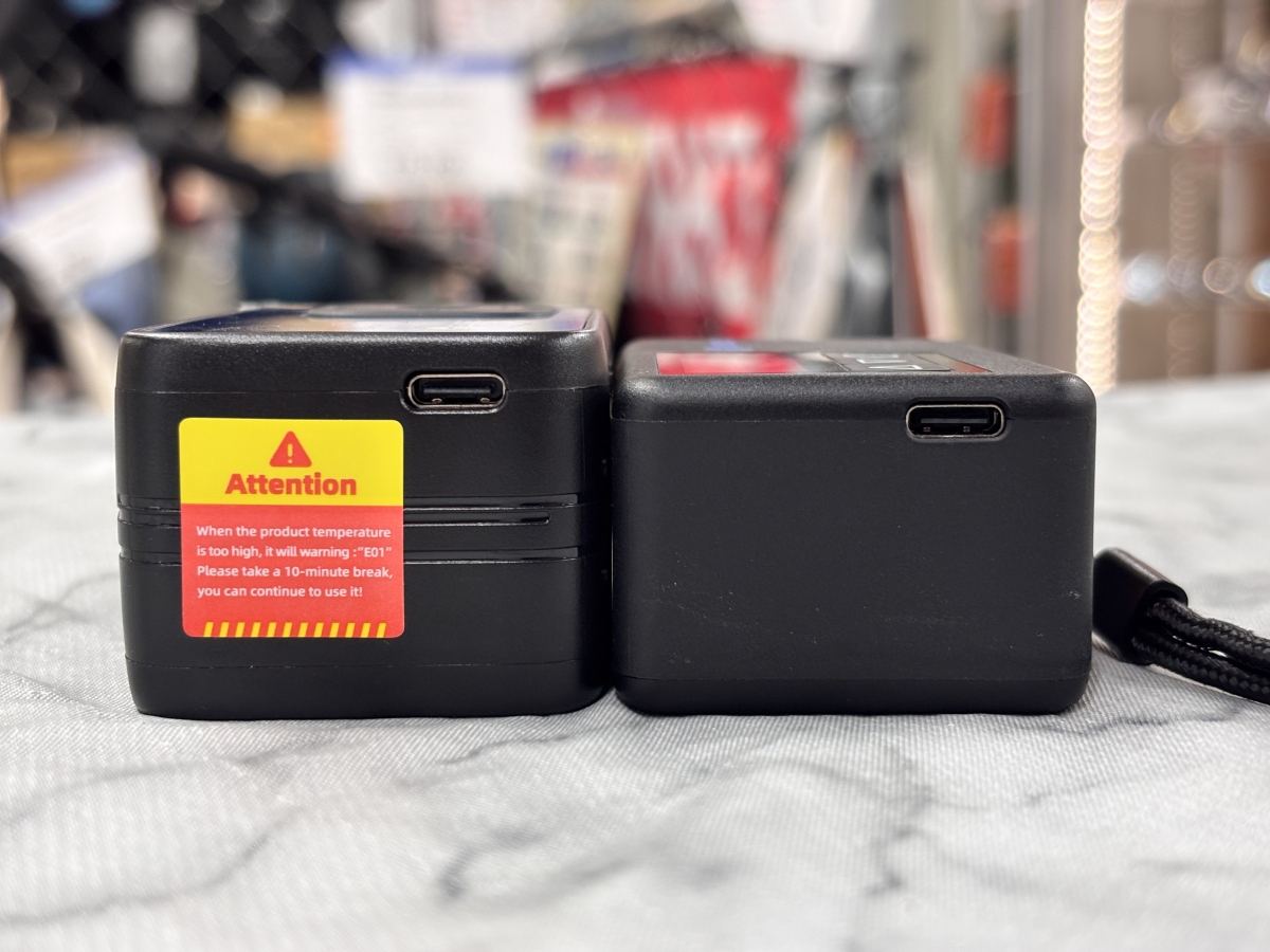 簡単に変更点をまとめると、厚みが前作よりも1cmほど厚くなり正面の操作ボタンの位置変更、本体裏面の穴の数も増えており放熱性の改善が見られます!また新製品は前作と比較すると重量が22g重くなっています!新作はストラップホールが無くなってますね。