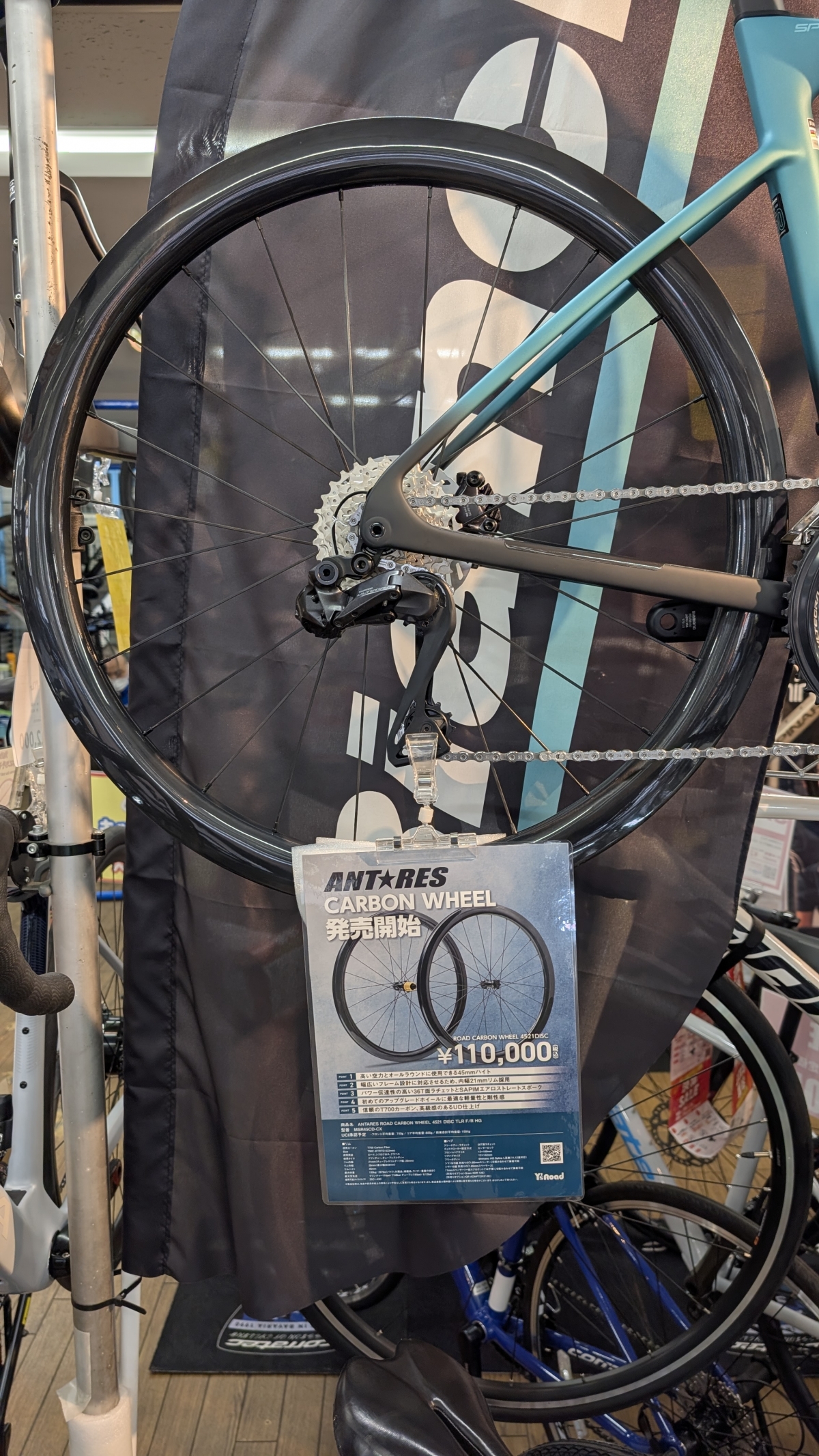 ホイールはワイズロードオリジナルブランドのアンタレスカーボンホイールを採用。