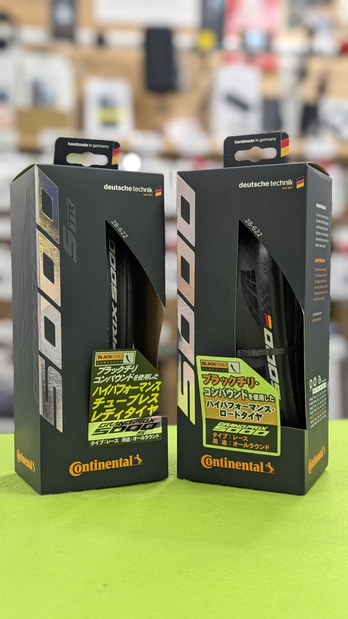 高いシェア率を誇るコンチネンタル。5000と5000S TRはチューブタイプかチューブレスタイプかの違いですが、