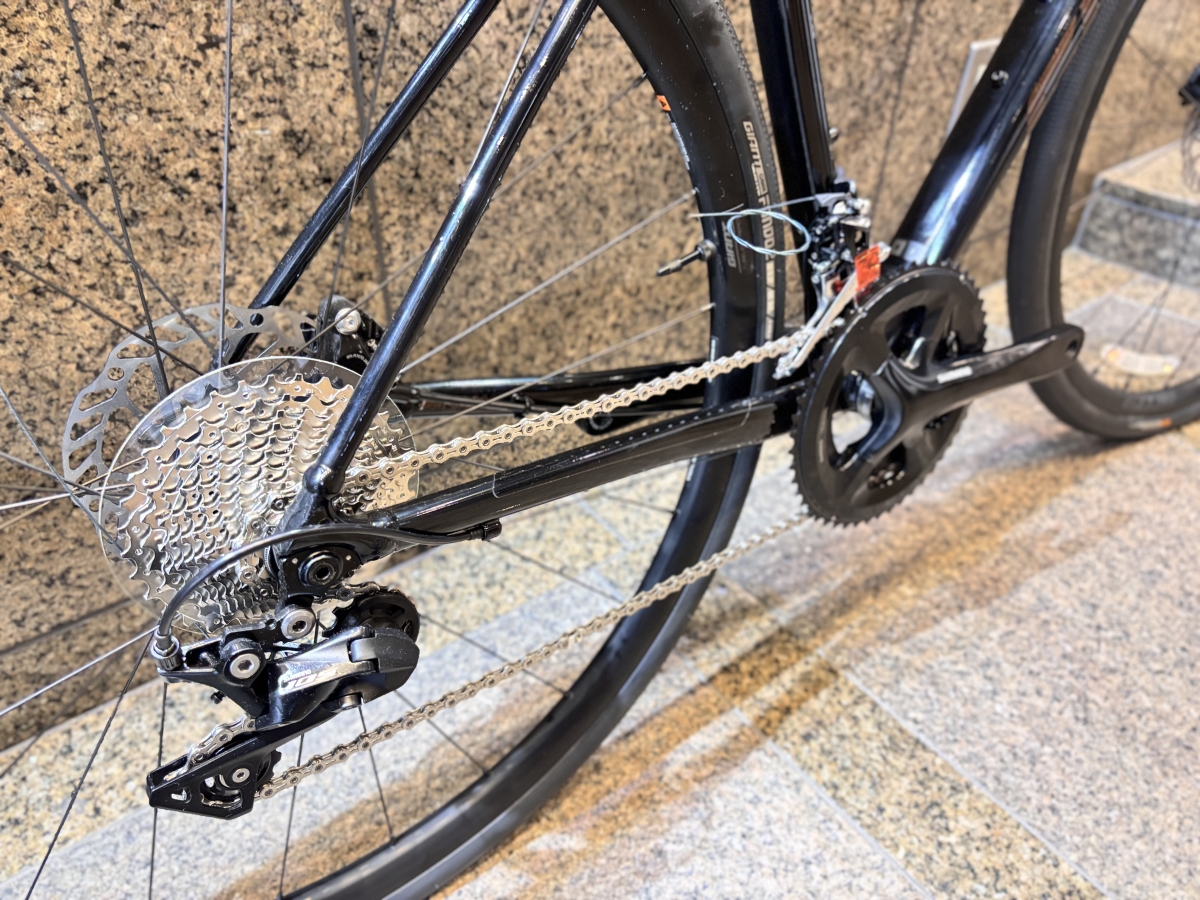 コンポーネントは105機械式11速が採用されています!リアスプロケットの最大歯数は34Tで過酷な登りも対応してくれます。ブレーキも天候関係なく制動力のある105油圧ディスクブレーキです!最新の12速ではないですがカスタム性があると捉えれますしまだまだ使えるコンポーネントですので十分すぎるスペックです!