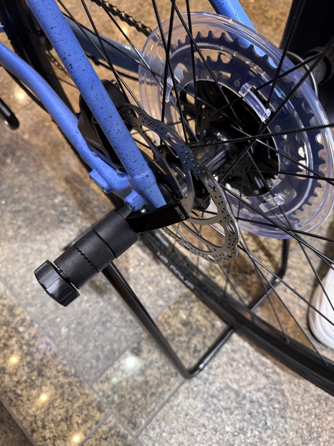 ブレーキは油圧ディスクブレーキを採用していて雨でも急な坂でもしっかり効いて安心。