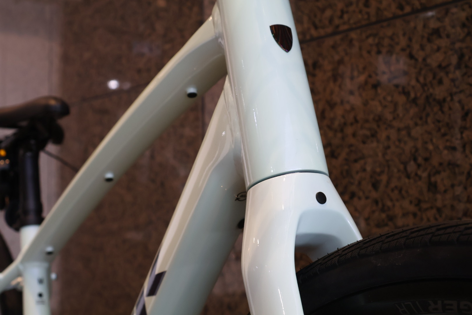 軽いアルミフレームにカーボンフォーク、フロントシングル、どんな天候でも確実に止まれる油圧ブレーキを装備しています!タイヤは700×35Cと舗装路、砂利道関係なくどこでも軽快に走れる仕様です!