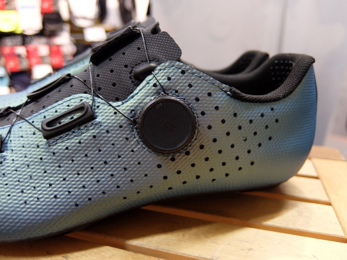 メッシュにポリウレタンをラミネートしたしなやかなアッパーに、高剛性なフルカーボンアウトソールを組み合わせた、快適性とパフォーマンスに優れた一足です。