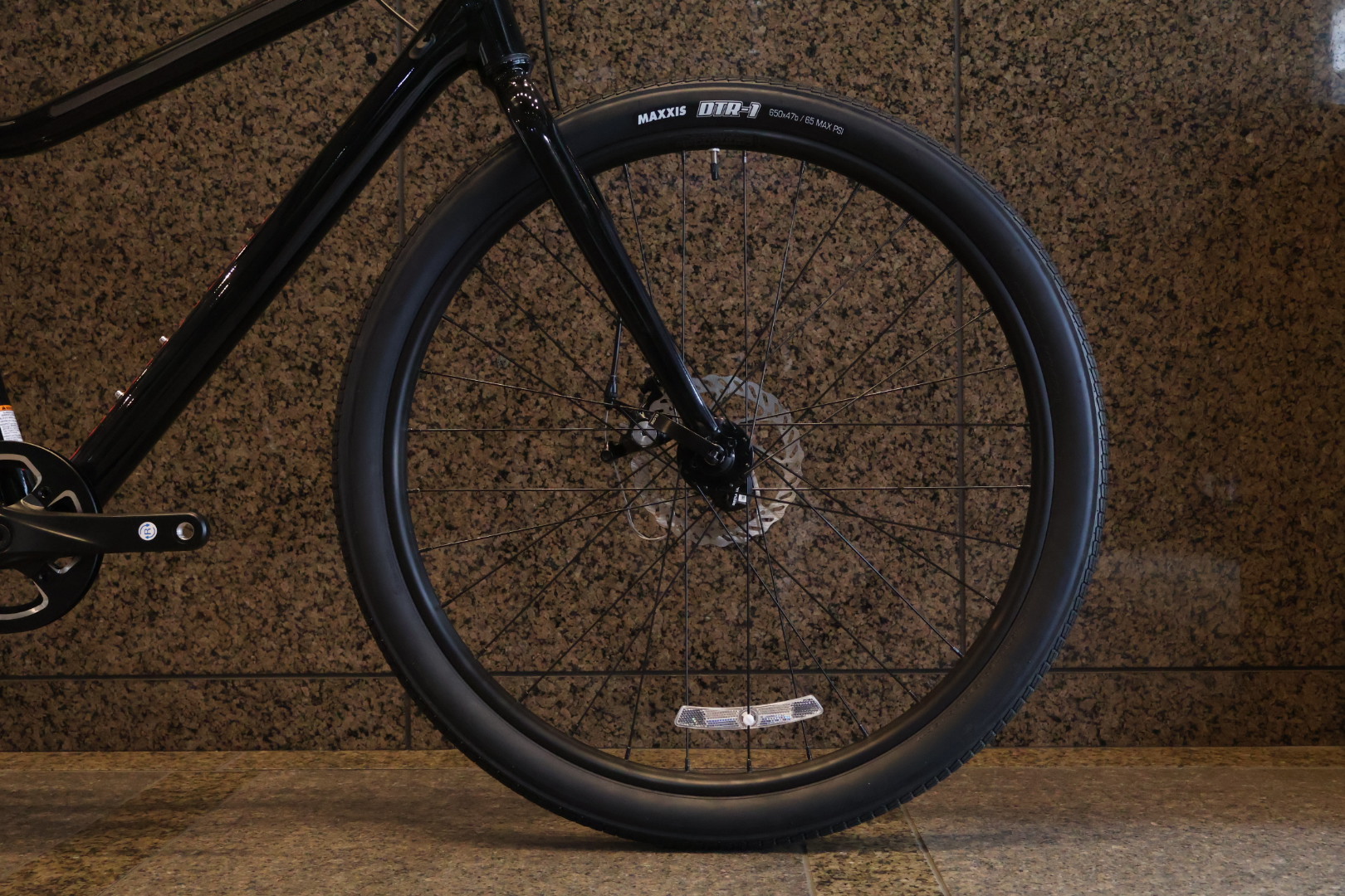 変速は1×7でリアスプロケットは11-34とで坂も平坦もすいすいこなせます!機械式ディスクブレーキでどんな天候でも安心の制動力を備えています!タイヤは太く650×47bが付いてくるのでタイヤが太いので安定感も高いです!