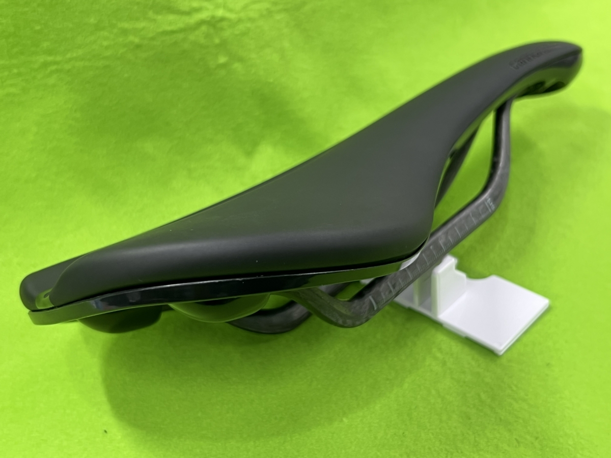 このサドルはカーボンレールを採用するなど自社製品比較では軽く仕上がっています。他社の超軽量を謳う商品と比較すると…な部分はありますが、その理由は“乗り心地”です。