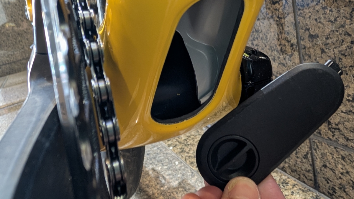 ダウンチューブ裏には蓋が付いています。