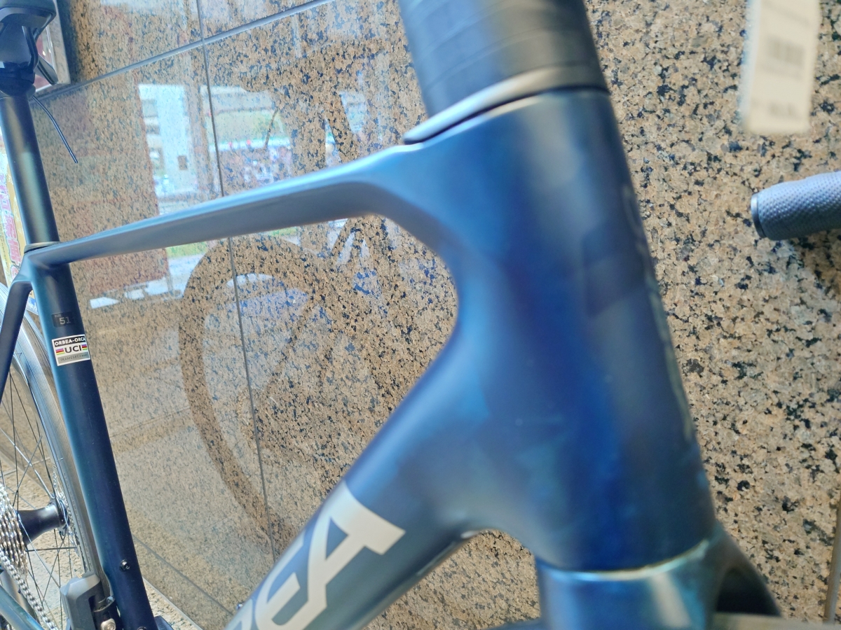 深いマットネイビーのフレームにシルバー箔のロゴはシックで大人の余裕を感じさせ、完成車では存在しない唯一無二のカラーです。
