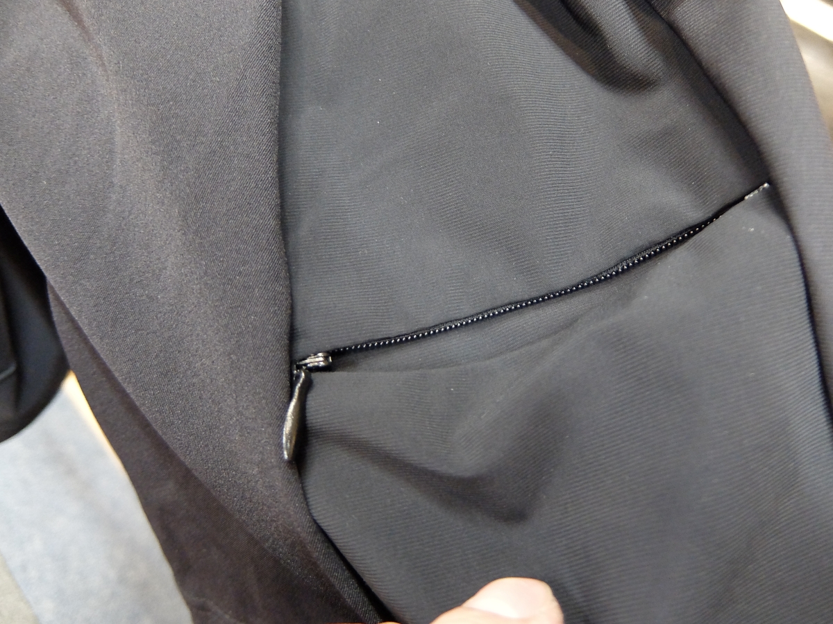 両サイドの大きなポケット2つ、そして背面の右裾付近にあるジッパーポケット1つ。