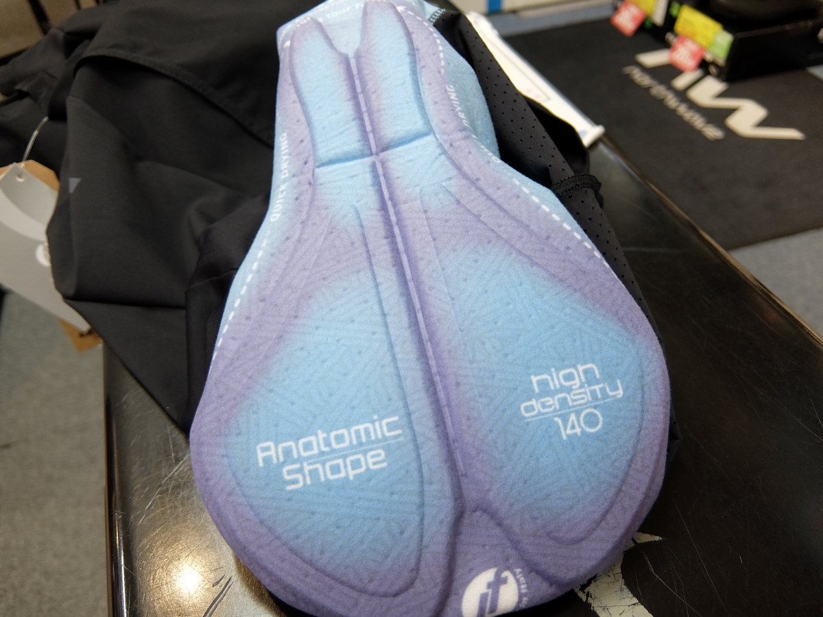 非常にしっかりとした作りのパッドで、中心部は高密度で路面からの振動や衝撃を吸収しつつ、その周囲部分は伸縮性に優れて足の動きに追従し違和感のないペダリングを実現、お尻の痛みを軽減してくれます。