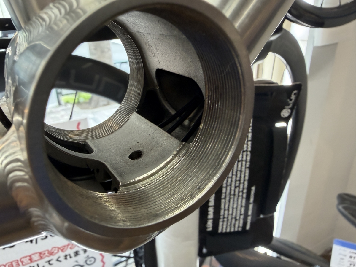 スレッドBBであるT47規格を採用。整備性は良好でプレスフィットBBよりも音鳴りはしにくくなっています。BBシェルも大口径で溶接面を広くとり強度を上げてなおかつ高剛性になっています。