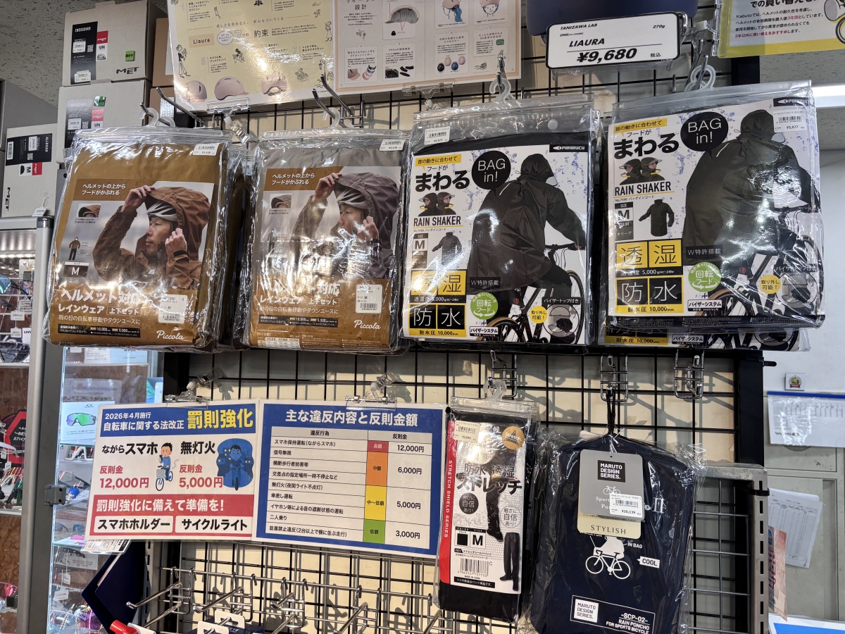雨でも自転車に乗る方や通勤通学される方なんかいかがでしょうか。サイズもカラーも在庫ありますので気になる方はワイズロード池袋本館までお越しください!