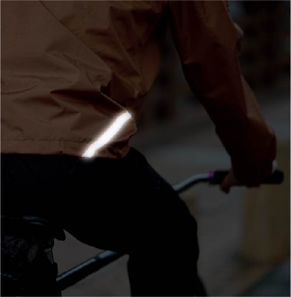 安全面にも配慮され夜間の視認性を高めるリフレクターもついています。手首部分もベルクロで調整でき、足首部分もスナップボタンで雨の侵入を防いでくれます!