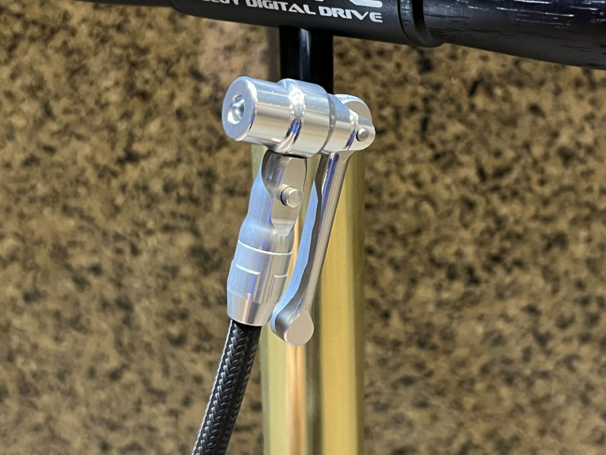 このポンプは18Kメッキでメインシリンダーをコーティングしたブランド最上級の商品です。色味は落ち着いたGOLDで、玄関先やワークスペースに保管している時も高級感があって良いと思います♪台座部分はアルミ製ですが重量感があり安定感も十分です。