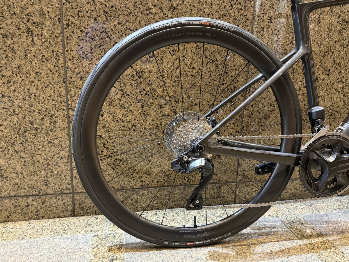 リムハイト40mm、重量約1335gと軽量かつ空力性能も良く、平坦から山岳まで非常にオールラウンドに使うことのできるホイールだと思います!