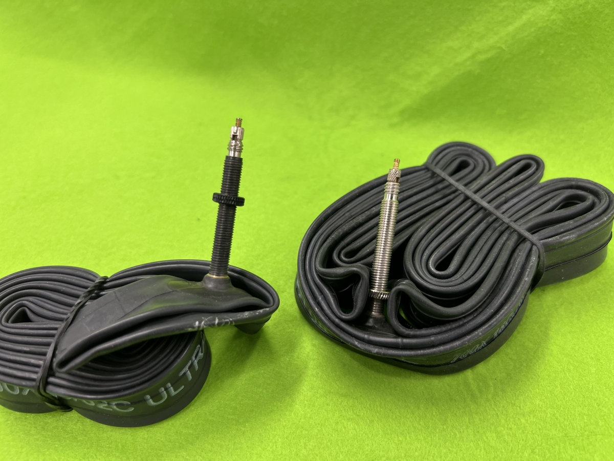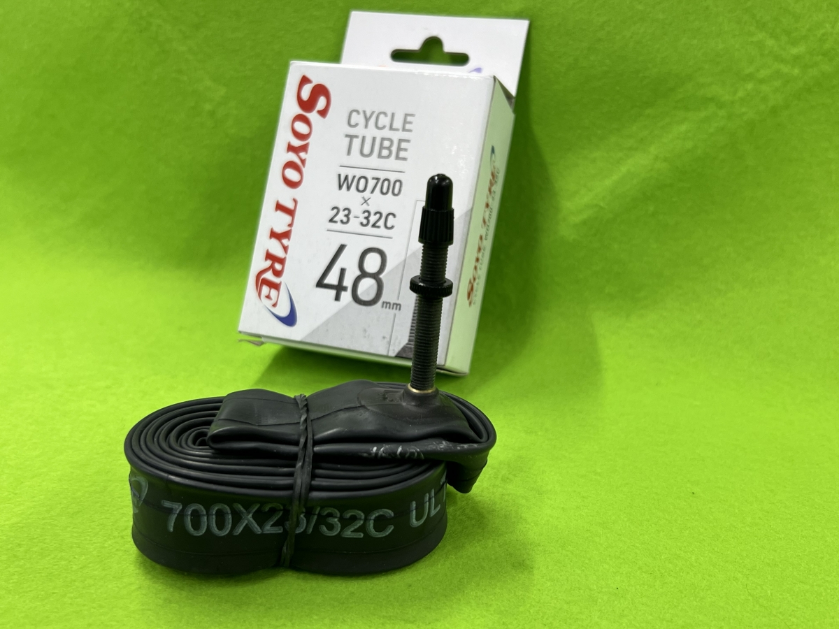 一般的にバルブ部分は金色/真鍮色または銀色が多く、ホイールに装着するとどうにも目立ってしまい気になる…なんて悩んでいる方もいるはず!そんな時には今回ご紹介している商品がオススメです!チューブ素材はスタンダードなブチルゴム。適応サイズも23~32Cと細めのロードタイヤからクロスバイクまで幅広いバイクでご利用いただけます♪48㎜のフランス式バルブでコアの取り外しも可能になっています。当店在庫はFV48㎜ですが、60㎜、80㎜のラインナップもございます。