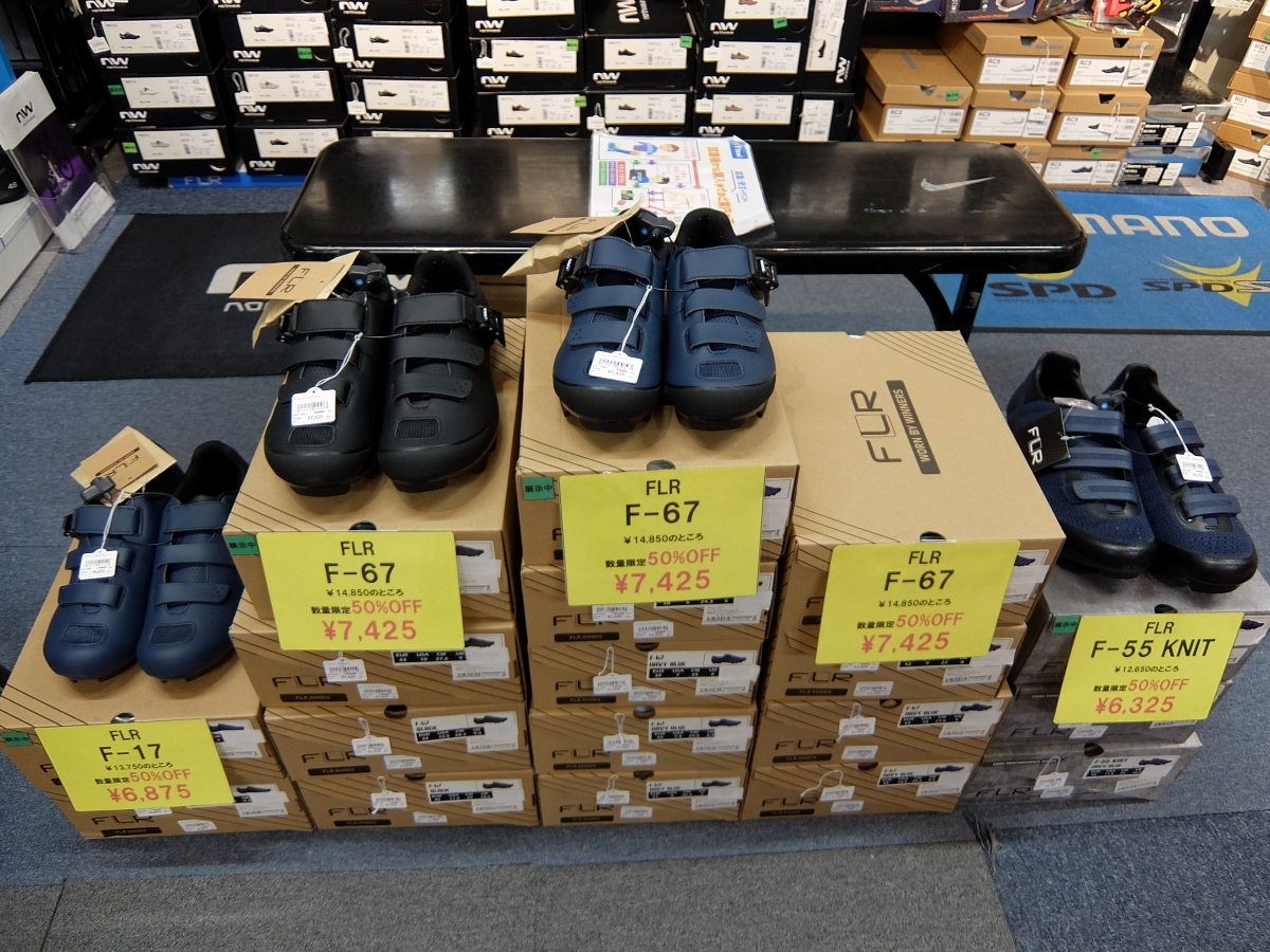 当店ではPOP-UPで試着会を開催したりとなじみ深い【FLR】のビンディングシューズが爆安です。