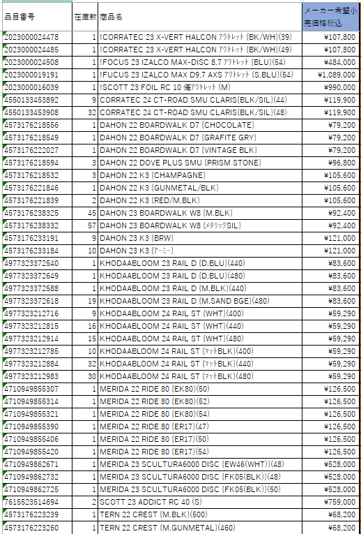 日本最大級のスポーツサイクル専門店!アウトレット集約店!