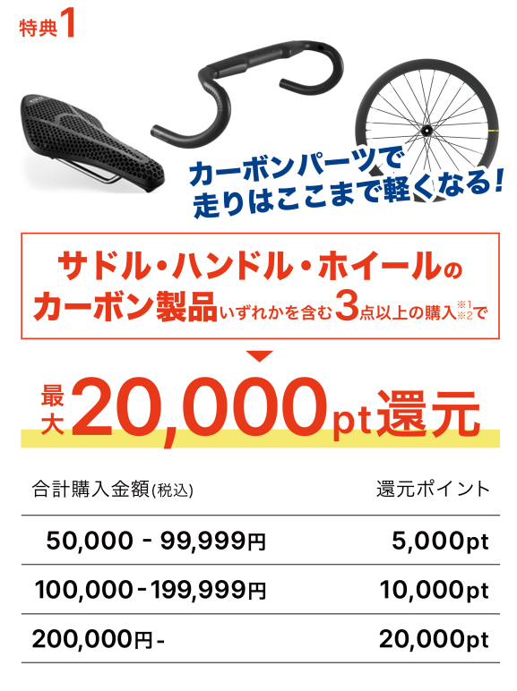 完成車やフレームだけじゃなく、ウェアやアクセサリー、スモールパーツのまとめ買いにも!
