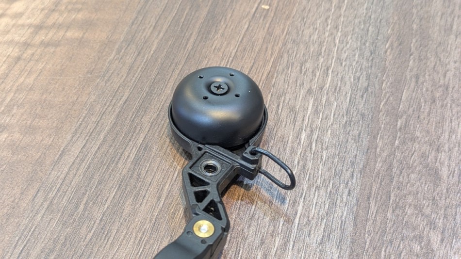 この様に裏面にベルが一体化されています!音は高めで思ったより大きい音が鳴ります。上ハンドルを握ったままベルを鳴らすことができるので安全性もかなり高いと思われます。