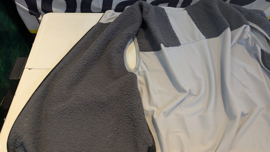 おなか周りから肩にかけて裏起毛素材になっている為保温性能も申し分ないです。