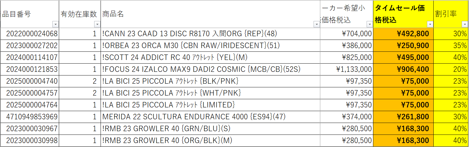 日本最大級のスポーツサイクル専門店!アウトレット集約店!