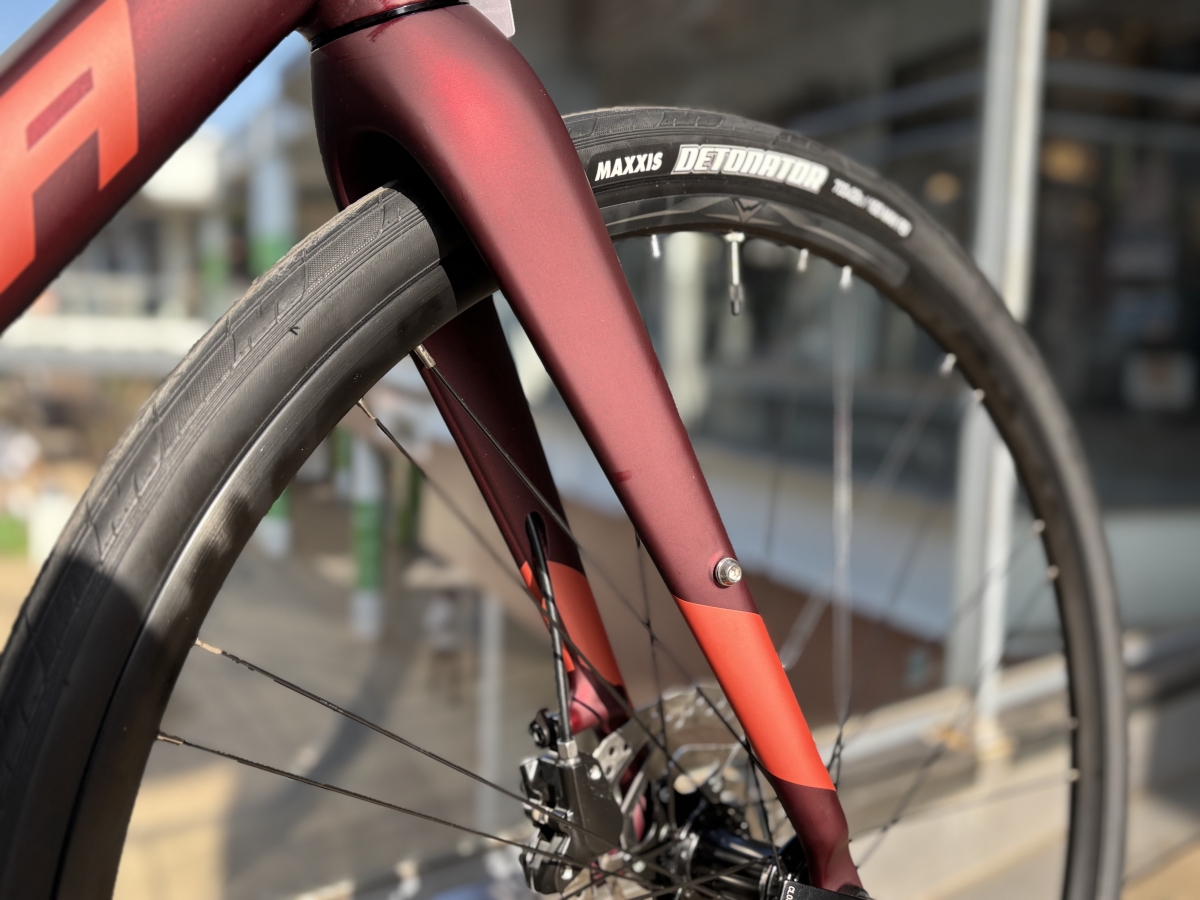 カーボンフォークを採用し車体重量の軽量化と快適性の向上に繋がっております。